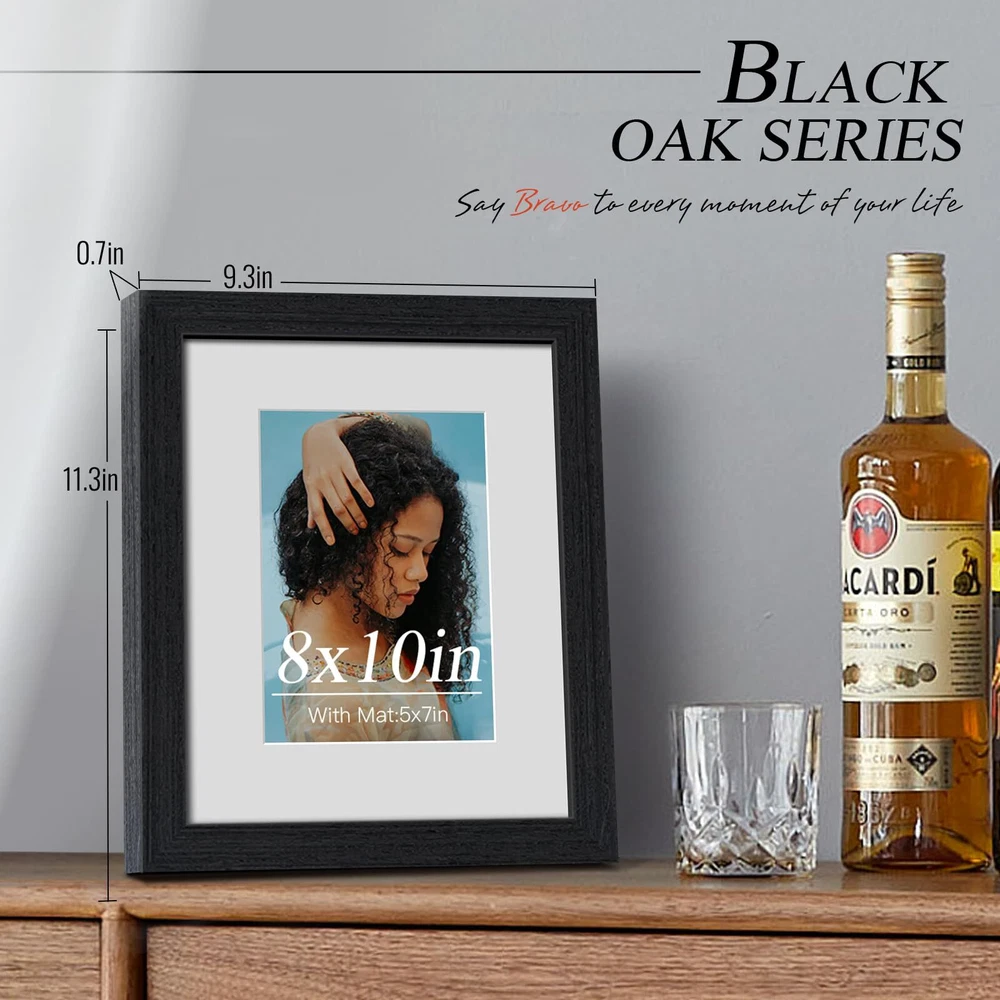 Award-Winning Design: Immerse yourself in the timeless elegance of Pennsylvania oak grain, masterfully reimagined in black by our independent designers team at . This tribute to classic craftsmanship fits seamlessly into any décor and brings a touch of sophistication to your life. FSC PREMIUM WOOD: Embrace the commitment of to sustainability and uncompromising quality. Our robust, long-lasting frames, echo our pledge to nature. Enhanced corners and backboards make sure your cherished moments are beautifully encased for eternity. PRODUCT FEATURES: Our versatile frame is perfect for displaying 8x10 without mat or 5x7 with mat photos. With the innovative design, you can effortlessly load your pictures and choose between horizontal or vertical display. Optimal View: Enjoy a new visual experience with our shatterproof HD tempered glass. Offering unparalleled UV ray protection and glare resistance, it's a safe and perfect choice for homes with children. Satisfied, or money back: At , we prioritize your satisfaction and strive for excellence in our product experience. We pack our frames securely to ensure a pristine condition upon arrival.