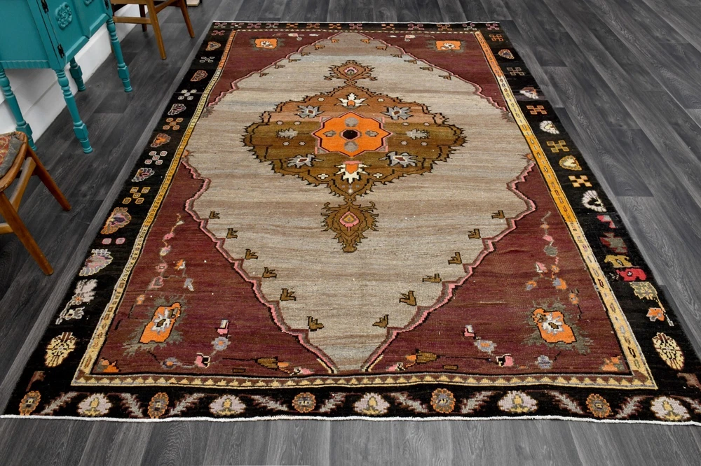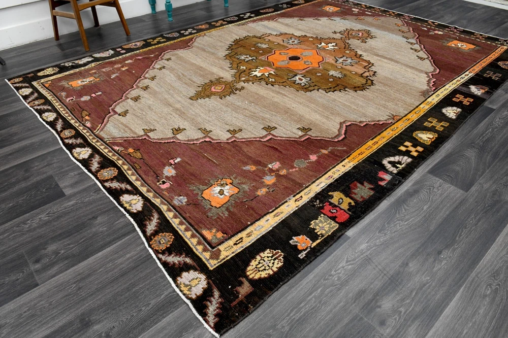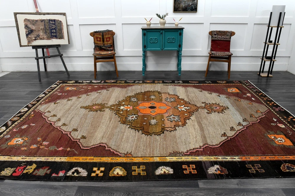 8x11 ft, Unique Turkish Area Rug, Vintage Rug, Oushak Rug, Minimalist, Rainbow