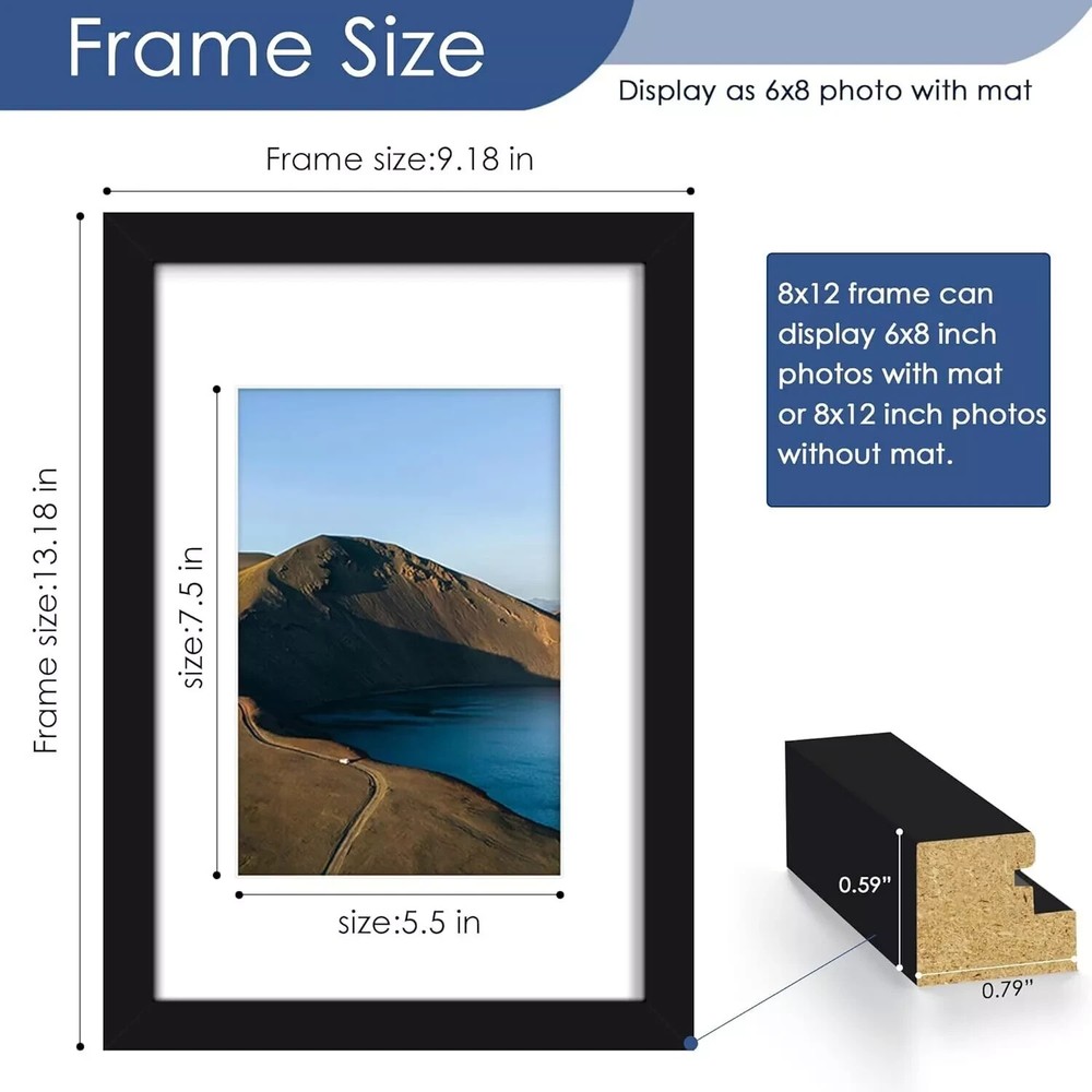 ✅ Brand New & High Quality ✅ Fast Shipping from Trusted Supplier ✅ 100% Customer Satisfaction Guarantee 8x12 Picture Frame Black, Display Pictures 6x8 with Mat or 8x12 Without Mat STURDY MATERIAL: The 8x12 frame is made of sturdy wood rather than plastics, great looking and the mounting board is a durable MDF wood. Sturdy, durable, and anti-drop it can protect your photo against dust, moisture, or insect damage, keeping it new for years. VERSATILE DISPLAY: 8x12 frames black is designed with strong hanging hardware on the back, You can hang them horizontally or vertically for a gallery-style wall mount. Watch your cherished photos come to life and add interest to a wall or tabletop in your home. EASY MOUNTING: This 8 x 12 frame come with flexible swivel tabs on the back, Spring type action to remove the backing, without hurting fingers. It’s easy to open and put in photos, so you interchange photos regularly with confidence. SIZE: Each 12 x 8 frame is designed to fit a 6x8 photo with a mat or, if you remove the mat, it can fit an 8x12 photo. They are suitable for displaying your family photos, landscape photos, certificates, diplomas, artwork, etc. PERFECT PACKING AND GIFT: Our 8 x 12 picture frame is carefully packaged to ensure product safety. You don't have to worry about receiving damaged products. At an affordable price point, this frame offers unbeatable valu . 📌 Why Buy From Us? - Fast, Reliable Shipping - No Hassle Returns 💬 Questions? Message us anytime!