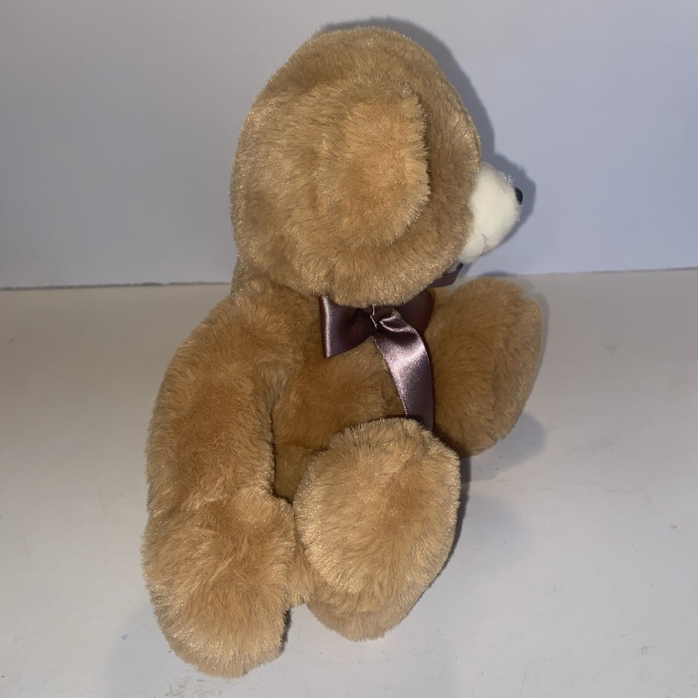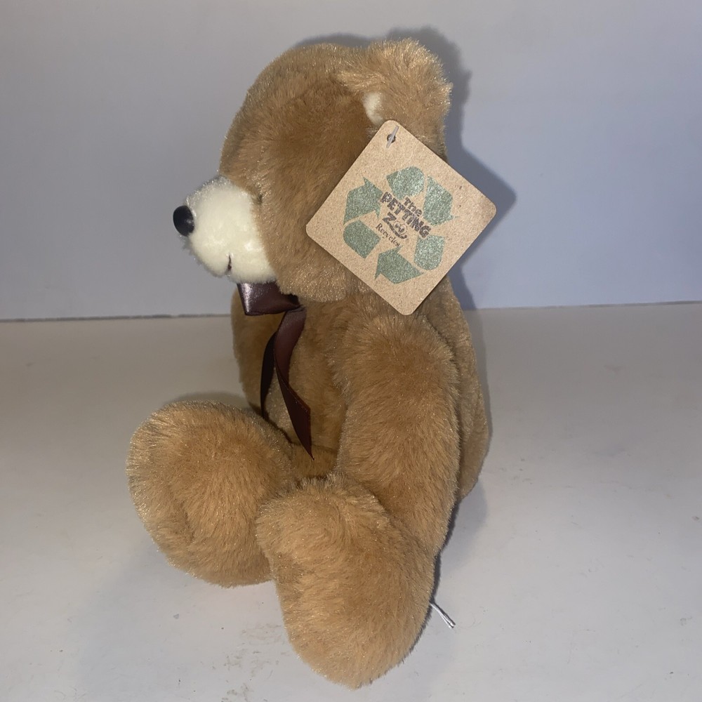 The Petting Zoo Plush Stuffie 9" Brown Bear Soft Cuddly Satin Bow NEW With Tag