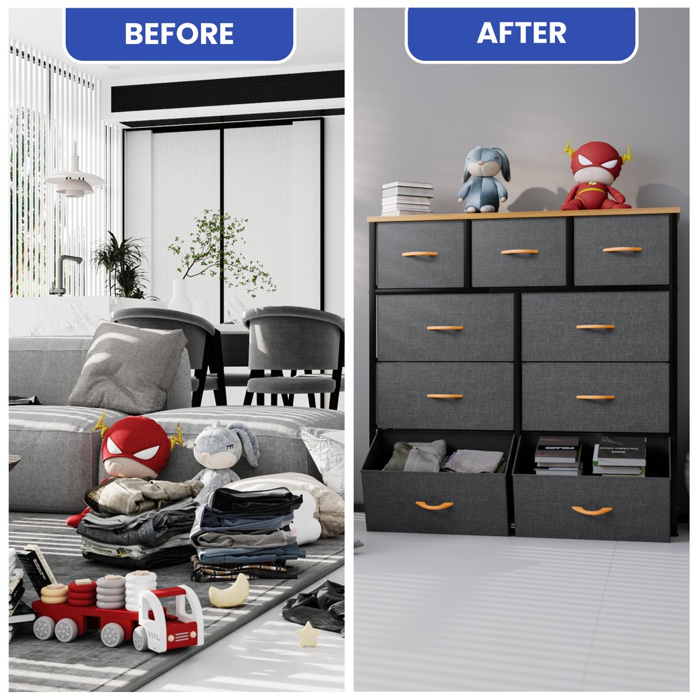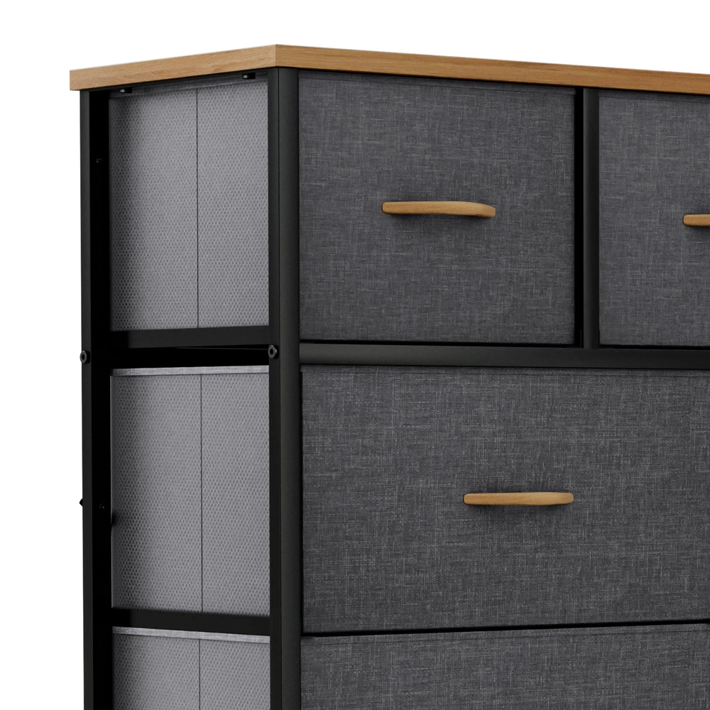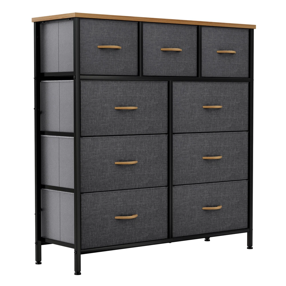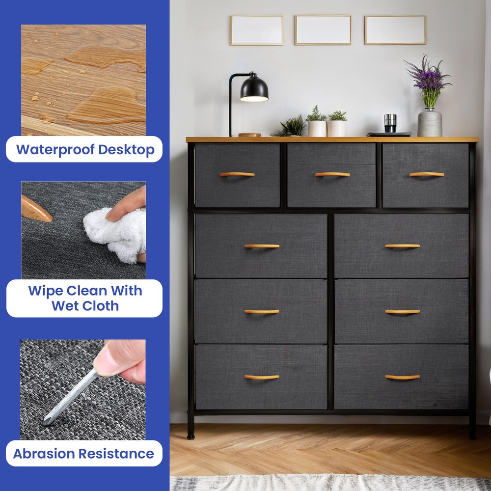 9 Drawers Dresser Gray Fabric Chest of Organizer Waterproof Desktop Bedroom Unit Product Description NOTE: Professional Installation would be Highly Recommended. Description: 1. Color: Gray 2. Material: Fabric, MDF, Steel, Plastic 3. Frame Material: Metal 4. Room Type: Bedroom, Living Room and Hallway Features: Robust Construction: - Crafted with a sturdy metal frame and a robust MDF wooden top for lasting durability. - Features 9 removable drawers with convenient wooden handles for easy access. - Supported by 4 adjustable plastic legs to safeguard your floors from scratches. - Augmented stability through an innovative crossbar design at the rear. - Choice to secure the dresser to a wall using screws for extra safety. High Quality Fabric: - Front side of drawers made with premium cationic polyester fabric. - Surrounding sides covered with breathable, non-woven synthetic fabric. - Easy to clean - simply wipe with a damp cloth and air dry. Ease of Use: - Comprehensive guidance for a simple setup process. - All essential components and add-ons are encompassed within the bundle. - Putting it together entails securing just a handful of screws. Adaptability: - Showcasing an elegant and contemporary style, adorned with high-quality dark gray fabric drawers, a robust black metal structure, and a waterproof wooden surface. - Applicable to a multitude of environments such as lounges, sleeping quarters, corridors, entrances, storage spaces, and infant rooms. Ample Storage : - Efficiently organizes clothes, accessories, books, and more. - Overall dimensions: 39.4" L x 11.8" W x 39.4" H. - Large drawer dimensions: 18.1" L x 11" W x 8.5" H. - Small drawer dimensions: 11.8" L x 11" W x 8.5" H. Dimensions: 1. Product Dimensions: 39.4"L x 11.8"W x 39.4"H 2. Capacity: 9 Drawer Package Included: 1. 9 Dresser Storage Chest 2. Assembling Hardware Kits 3. Instruction Manual Book Shipping 1. Normally the item will be dipatched within 1 business day if payment is cleared before 12pm PST. 2. Please verify the correct shipping address in your PayPal account before making the payment. We only dispatch the item to the address that is sent to us at the time of checkout. 3. We don't ship to Hawaii, Alaska, Puerto Rico, APO/FPO/PO Boxes. 4. We don't provide local pick-up service. 5. Normally we will use USPS, UPS, FedEx & LTL to dispatch items. Payment 1. We accept PayPal and credit card. 2. We will ship to the confirmed Paypal shipping address that is provided with the payment only. Return 1. 30 days Money Back Guarantee. 2. Please contact our customer service to receive a RMA form first if want to return the item. 3. All returned items MUST in new condition with the original package. Contact If has any problem, please contact us by sending an ebay message. Our customer service will resolve the problem as soon as possible. On Aug 29, 2024 at 23:07:39 PDT, seller added the following information: On Mar 14, 2025 at 04:45:19 PDT, seller added the following information: