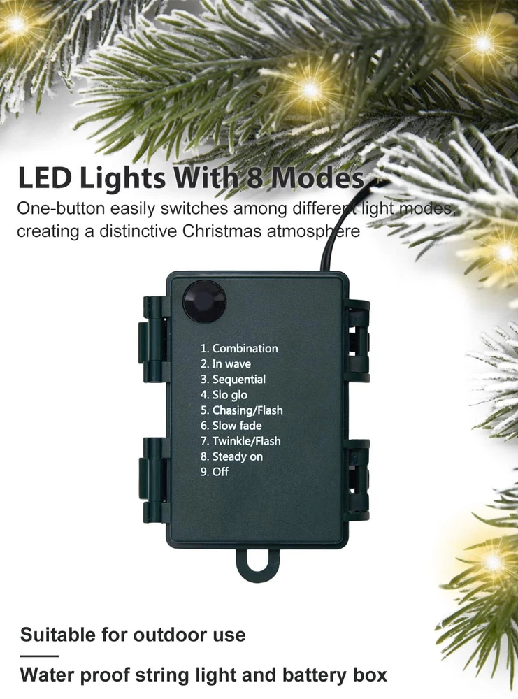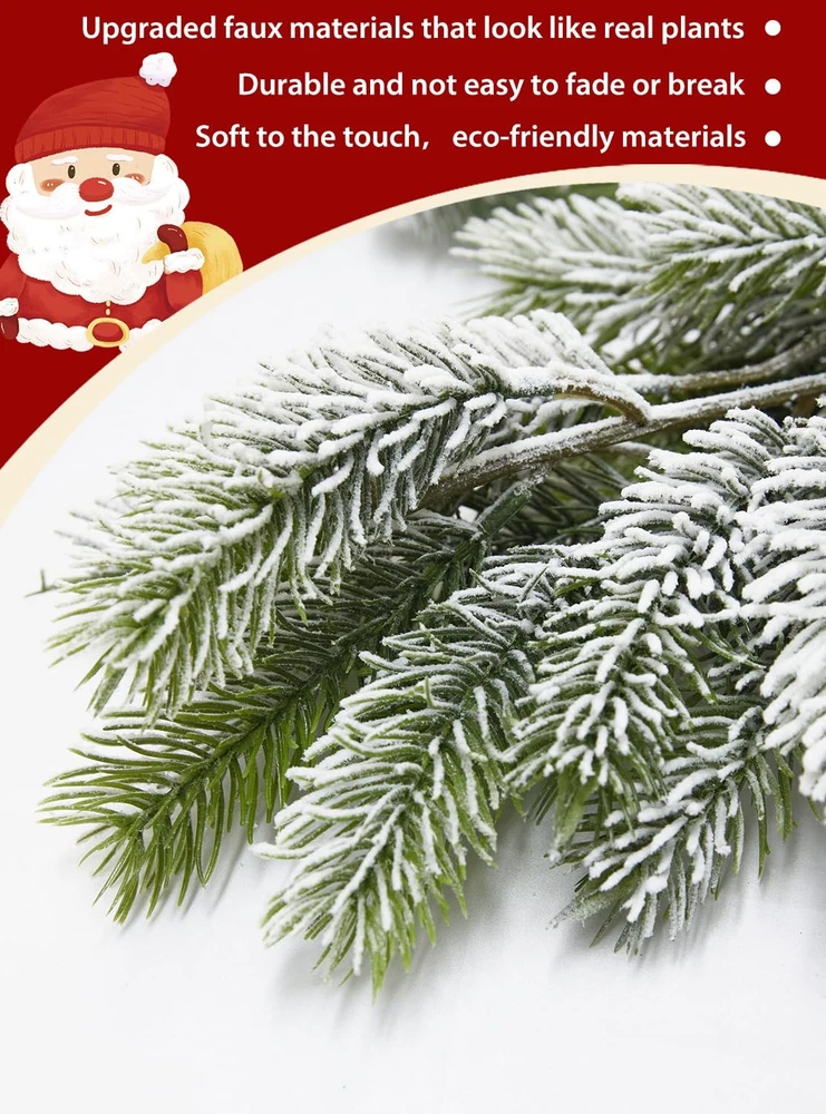 Christmas Garlands 02 snow 【Five Style Christmas Garlands】For Christmas 2024, we have prepared 5 styles of Christmas garlands: Pine Needle, Snow-Frosted Pine Needle, Premium Norfolk Pine, Cypress Leaf, and Smoky Pine Needle. Each garland is made from high-quality, realistic materials that are vibrant in color, eco-friendly, and durable. Additionally, each garland comes with an 8-mode LED light set. Mix and match these styles to create distinctive and charming decorations for your home. Don’t miss out—try them now! 【Realistic Design】Our Christmas garlands feature a design inspired by natural green pine needles, offering a lifelike appearance and texture. Most importantly, its vibrant color stays fresh and won't fade or rot, making it reusable. It brings the beauty and vitality of nature to your home and garden decor, enhancing the festive spirit of Christmas! 【Material Upgrade】The upgraded Christmas garlands comes in five styles and is crafted from PE soft plastic material. This makes them eco-friendly, flexible, and elastic. The metal wire stems allow you to bend them into any desired shape, making them perfect for decorating various areas and achieving a flawless look. These garlands are waterproof and durable, standing up to sun and rain for long-term use. 【Free 8-Modes LED Lights】Each Christmas garland comes with a high-quality battery-operated LED light set (batteries not included). The LED lights feature 8 different flashing modes that you can switch between, creating various festive atmospheres. These lights will ensure your home and garden decorations shine brightly, even at night! 【Versatile】Our Christmas garlands are the perfect decoration for both indoor and outdoor settings during the holiday season. Simply drape them over tables, mantelpieces, front doors, living rooms, windows, walls, fireplaces, or any other spot you desire, and they will become a stunning centerpiece. The Norfolk natural touch garlands are ideal for Christmas decor, weddings, stages, living rooms, bedrooms, offices, hotels, restaurants, birthdays, supermarkets, and more.