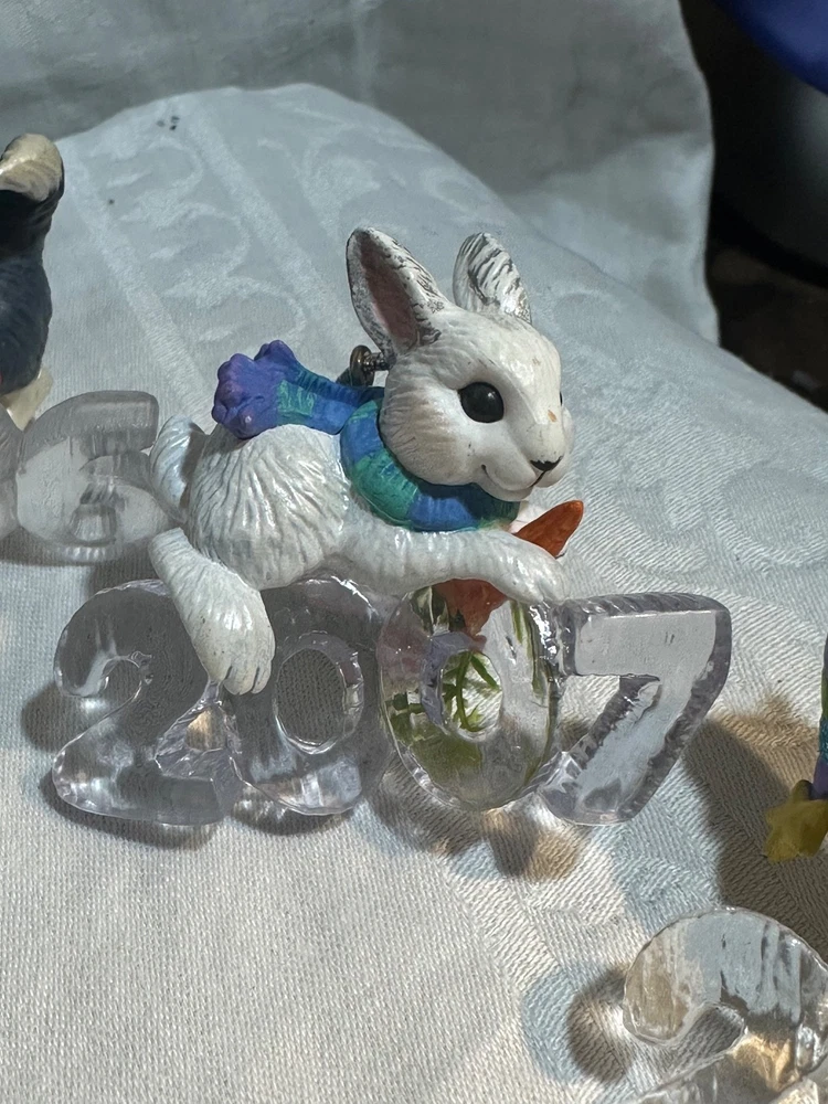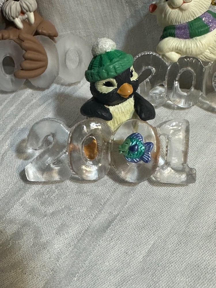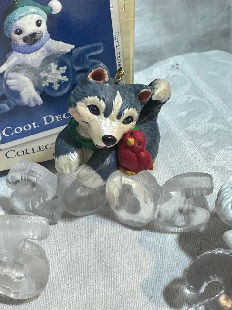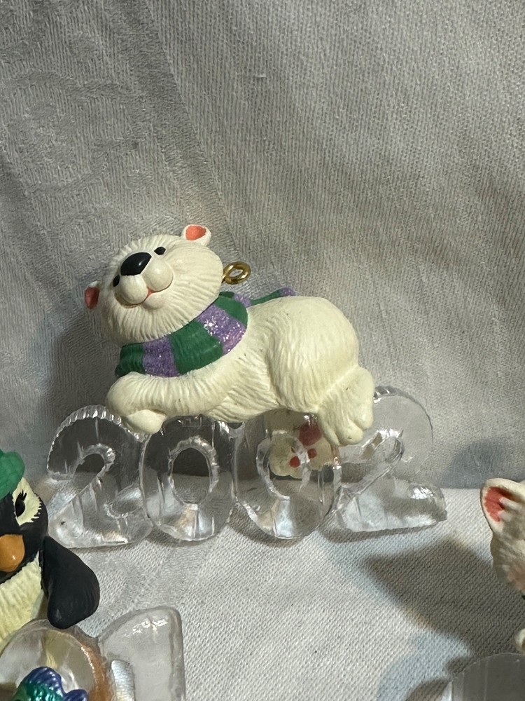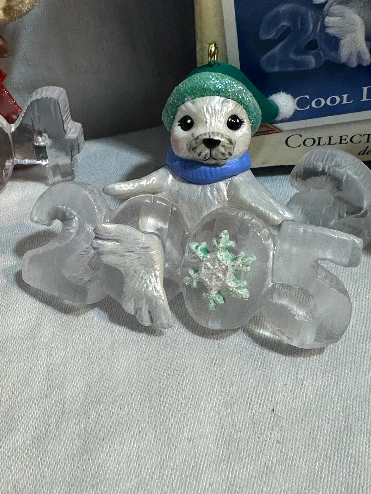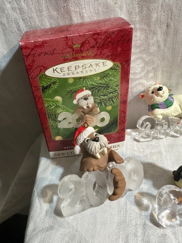 The 9 Hallmark "Cool Decade" series ornaments from 2000-2008 are a charming addition to any holiday decor. Each ornament features a unique animal shape and multicolor design, perfect for celebrating the 2000's decade. This vintage collection includes nostalgic pieces representing different years within the span of the decade, making it a fun and decorative choice for any adult's Christmas tree. Each ornament stands at 2 inches in height and comes from the original Hallmark brand, adding a touch of authenticity to this holiday collectible set. Only 2 have a box