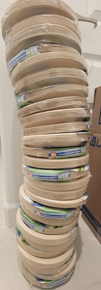 This set of 20 disposable plates is perfect for any occasion. The plates are made of bamboo and sugarcane, making them heavy-duty and durable. They come in a solid beige color and are perfect for serving a variety of foods, including pizza, sushi, and salads. The plates are designed with a round shape and are perfect for serving as a snack, side dish, or dessert. They are also great for use in picnics, tailgates, or any other outdoor event. With their unique design and high-quality material, these plates are sure to impress your guests. 9 inch plates 20in each pack total 28 packs available