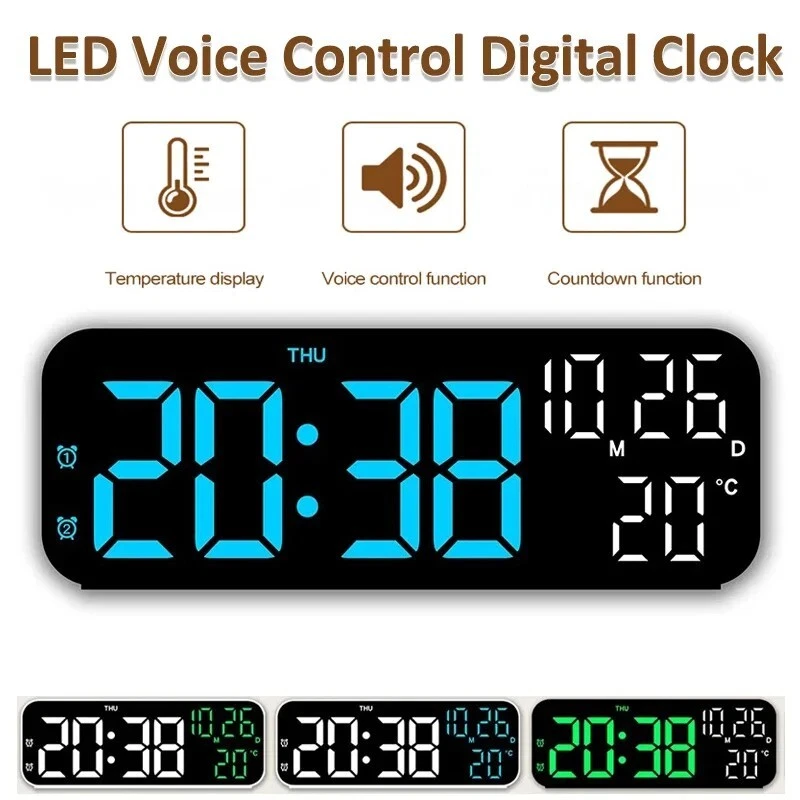 Brand: Unbranded Frame Material: Plastic Material: ABS Plastic Function: Acoustic Control Sensing Display Type: Digital Shape: Rectangular MPN: Does not apply Type: 9" LED Digital Voice Control Alarm Clock Style: Modern Power Source: Battery(AAA), USB - C Room: Bedroom, Home Office/Study, Kitchen, Living Room Item Height: SEE IMAGES Item Length: SEE IMAGES Item Width: SEE IMAGES Features: 12-Hour Display, 24-Hour Display, Alarm, Battery Backup, Battery-Operated, Digital, Dual Alarm, LED Display, Night Light, Snooze Alarm, Temperature Display, USB Charging Port, Voice Activated Item Weight: 200 g Finish: Mirrored
