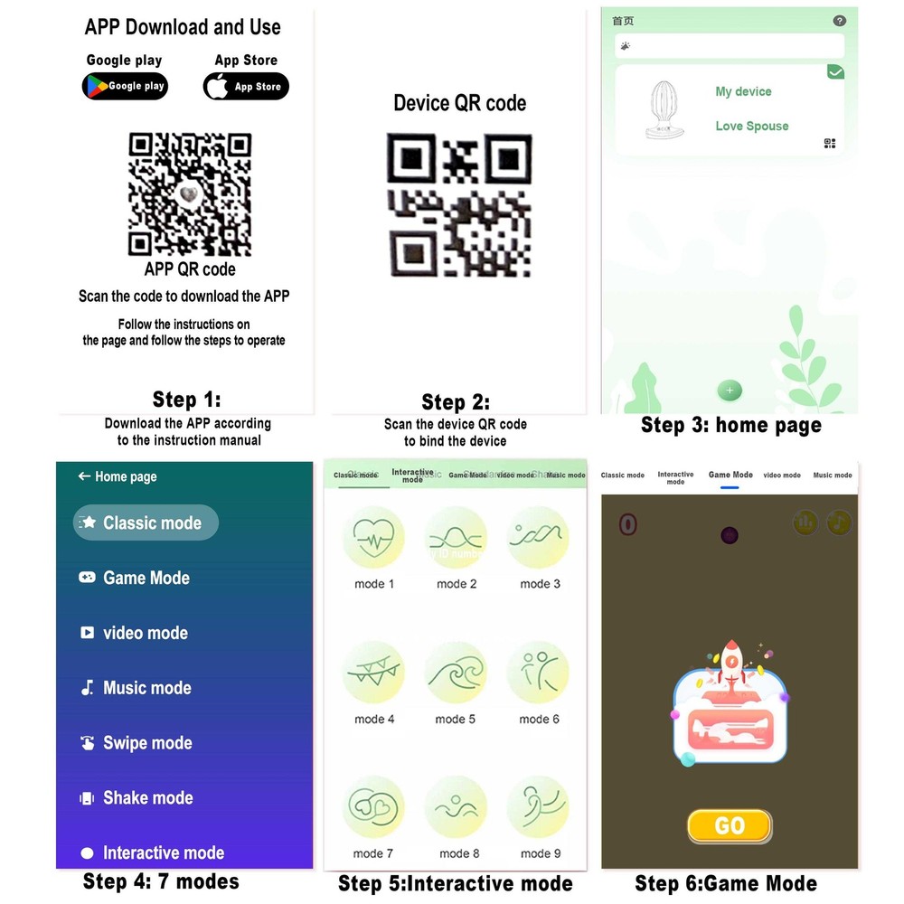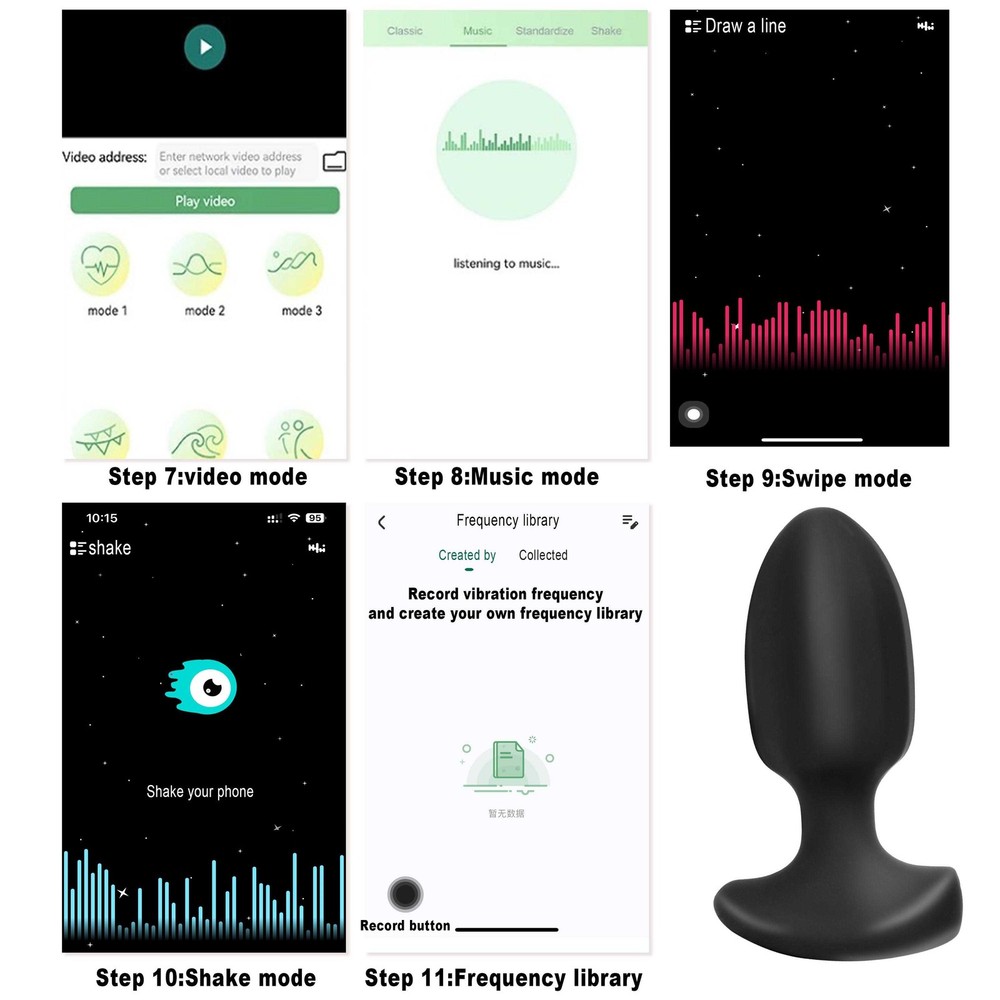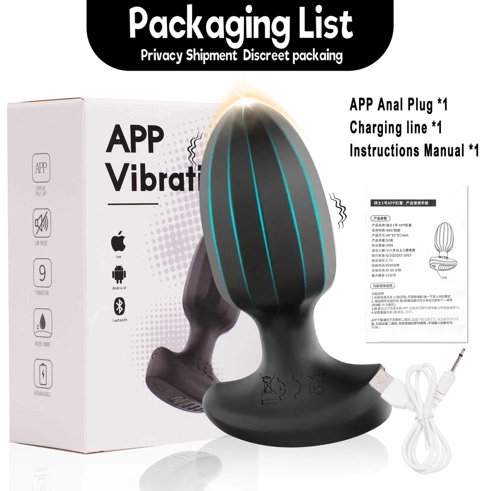 <> <> <> APP Remote Vibrator Anal Plug Product Description: Body material: ABS/silicone Vibration frequency :9 freuency Product size:48*32*87/mm Net weight: 53g Suitable for: people over 18 years old Executive standard:Q/ZQZQ02-2022 Rated voltage: 3.7V Battery life: about 90 minutes Charging time: about 60 minutes Max noise:50 dB PACKAGE LIST: 1x APP Anal Plug 1x Charging line 1x Instructions Manual About Charing: ---pls get charging plug fully inserted the charging hole,otherwise item can't be charged correctly ---indicator light will flashing when charging, and will turn on solid after fully charged How to Use: Without APP---press&hold the power button for 2-3s to turn on ---then click to change frequencies With APP---pls check the attach manual ---pls turn on vibrator firstly before controlled by APP If you have any problem with the listing, feel free to contact us firstly. We will respond you within 24 hours and resolve you issue ASAP.
