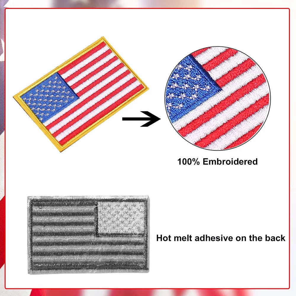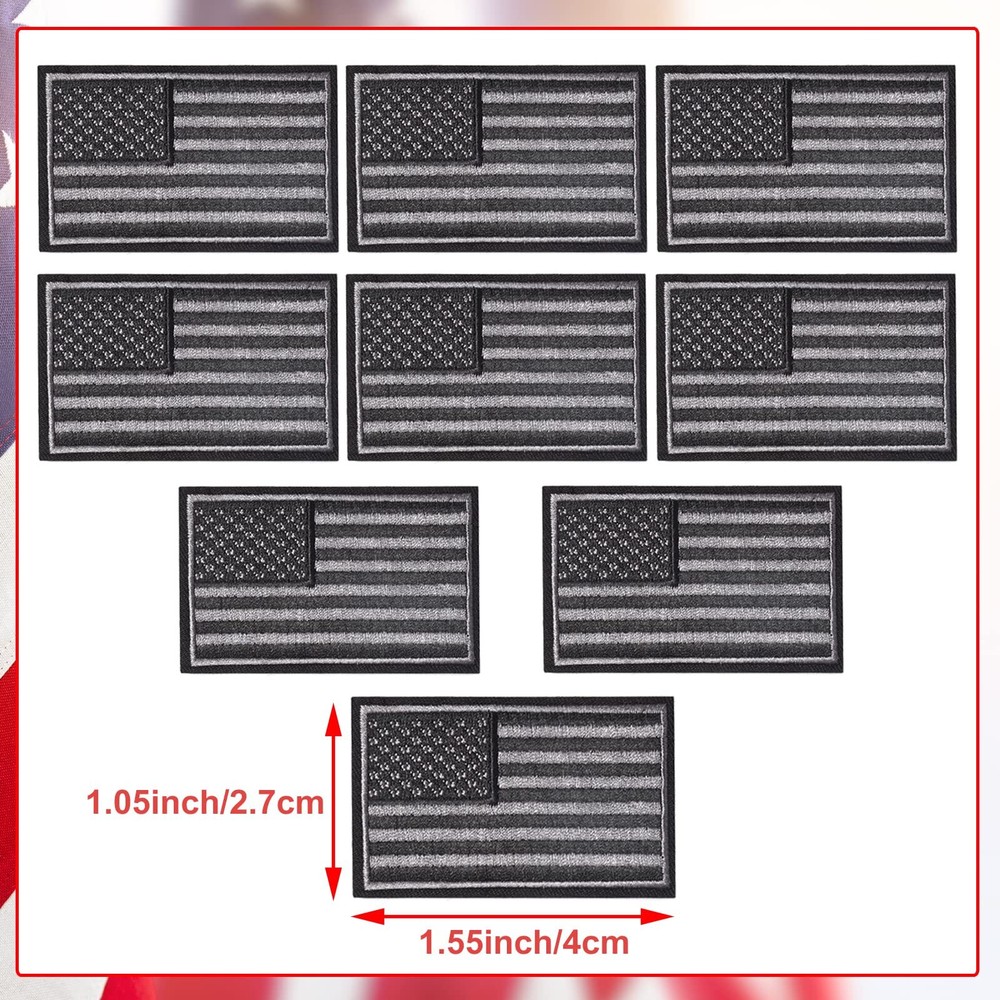 9 Pack Black American Flag Patches Iron On Sew On Embroidered US Flag Patches Features: Iron On Patches Pack: you will get 9 pieces small USA flag embroidered patch Flag Patch Measure: 4 x 2.8cm Durable: our embroidered patches remain the same even after washing and can be machine washed, and you need to turn the clothes over before washing. Material: 100% fully embroidered, high quality embroidered cotton material. Easy to operate: it has hot melt adhesive on the back, so it takes a little time to iron or sew on any garment. Description: Each of our patch packs comes with an assortment of patch options that creative and personalize your dynamic jeans, fashionable T-shirts, face masks, cool hats and other clothing! How to Iron 1. Set your iron to the hottest temperature. Don't use steam during use! 2. Put the embroidery patch in the desired position and place a pressed cloth(such as a handkerchief, sheet or pillowcase fabric) over it. 3. Press the iron stagiht for 35-45 seconds with as much constant pressure as possible. Don't walk back and forth. 4. Turn the clothes over and repeat steps 2 and 3. 5. Let the embroidery patch cool. Sewing: for some backpacks, hats and thick fabrics, ironing may not work well with thick materials. If so, consider sewing by machine or hand. 🌻 If you need more quantity than shown available - just send me a message and I'll increase the purchased limit for you 🌻 SHIPPING We are always working hard to ensure your package arrives as soon as possible. Please understand that some factors like weather, high postal traffic, and the performance of shipping companies are outside of our control. We offer free shipping to the lower 48 states. We do not accept P.O. Boxes. Please provide a physical address. Thank you 🌻 TRANSLATE with x English Arabic Hebrew Polish Bulgarian Hindi Portuguese Catalan Hmong Daw Romanian Chinese Simplified Hungarian Russian Chinese Traditional Indonesian Slovak Czech Italian Slovenian Danish Japanese Spanish Dutch Klingon Swedish English Korean Thai Estonian Latvian Turkish Finnish Lithuanian Ukrainian French Malay Urdu German Maltese Vietnamese Greek Norwegian Welsh Haitian Creole Persian