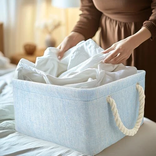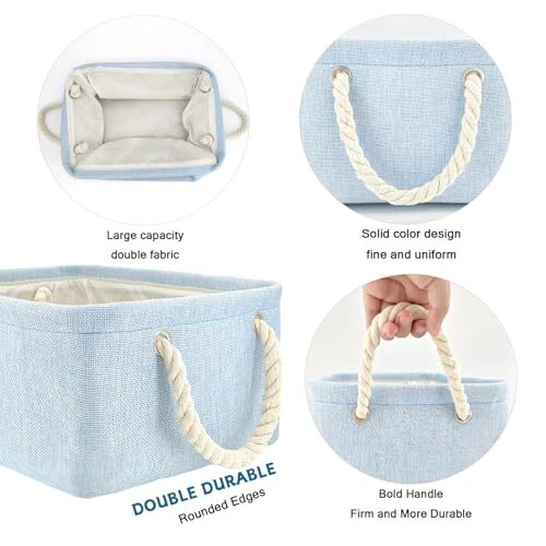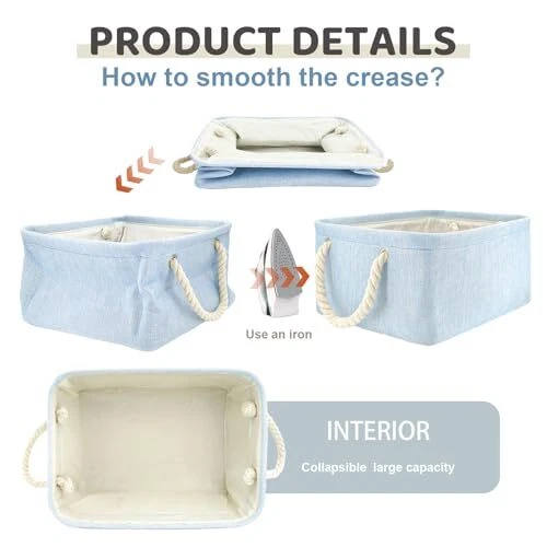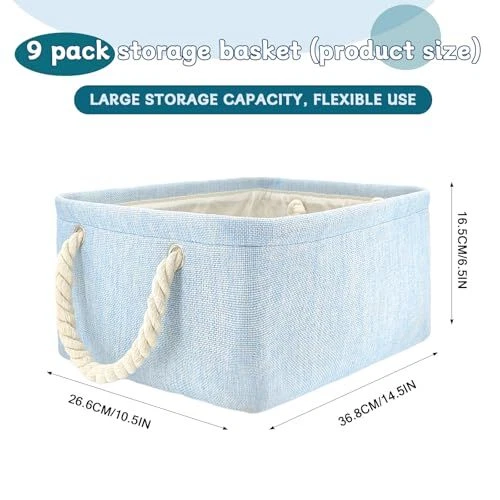 Return Policy Fast Delivery Trusted seller 9 Pack Storage Basket Bins & Decorative Baskets Fabric Storage Cubes Containers Bulk W/Handles for Office, Home, Books, Clothes, Bedroom, Closet (light blue) Product Description - MULTIPURPOSE USE : remote control, batteries, socks, accessories, suitable for jewelry, cosmetics, books, magazines, clothes basket, towel basket, Blankets, decorations, Office supplies, gifts, bathroom, craft room, Snacks, potato chips, Data cables. - STORAGE AND MOBILITY : You can put it in the trunk or on the back seat, Convenient for eating at outdoor picnics, Does not take up a lot of space, When carrying a wardrobe organizer, It is attached to the basket with metal grommets, The rope handle slides in and out of the shelf or closet with ease, And the handles themselves are made of soft cotton rope. - MATERIAL SUMMARY : The outer layer is made of durable cotton linen and the inner layer is eco - friendly EVA, reinforced by a metal brace around the top to keep the structure more complete, The perfect decorative storage box is sturdy and durable, this storage box will exceed your expectations for quality! - BEAUTIFUL AND PRACTICAL : The shelf basket can be wiped down with a cotton cloth as needed for easy cleaning, The classic woven cotton cord design is perfect for all home décor, Convenient Location, You can place it anyw, Decorative baskets are ideal for living rooms and bedrooms. - SIZE : 13.8 "L x 9.8 "W x 6.9 "H Medium fabric organizer can easily hold some of your everyday items at home, A perfect solution to some of your storage problems. Shipping Returns Payment Shipping Shipping is FREE to all addresses other than APO/PO boxes in the lower 48 states. All our stock ships from US-based warehouses. Shipped via USPS or UPS (depending on location and package weight) Unless stated otherwise, all orders will ship within 24-72 hours of your payment being processed. Check our feedback to see the great reviews of FAST shipping we offer. Returns Seller does not accept returns Payment We currently accept payment via eBay managed payments only. Once payment is cleared, we will dispatch your shipment within 1-3 business days. Please refer to the "Shipping" tab for more information regarding shipping speed to your destination.