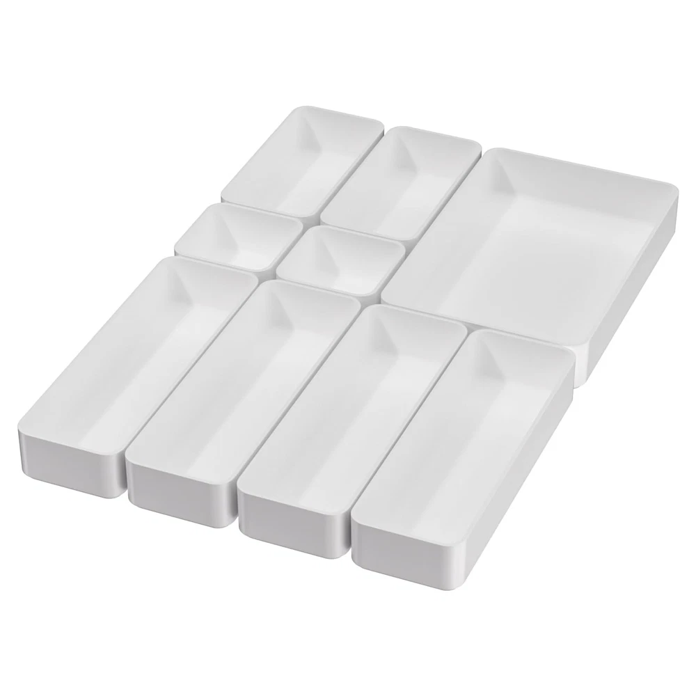 【9 Pcs Set】 These versatile stackable drawer organizer set are perfect for any place in your office or home. Package includes : 3.35 x 3.35" (2 pcs), 3.35 x 6.6" ( 2 pcs), 3.35 x 10" (4 pcs), 6.6 x 10" (1 pc). 【Sturdy and Durable】The desk drawer organizer trays set are made of durable PET plastic, ensuring a long life of use. Drawer organizer bins are break-resistant and could accommodate different items keeping the organiser nice and steadily stacked. 【Stackable and Space Saving】These stackable drawers are designed to save space, which can be used together or separately, so that you can efficiently organize your desk drawers and space. The drawer organizers can save your time to organize and find your stuff. 【Personalized】The variety of trays ensure there is a organiser for all your needs. You could use them individually or creative your own unique combo by stacking up the trays according to your needs and desire. Creating maximum storage with minimum spaces. hard to break, specially when stacking up heavy trays, keeping the organiser nice and steady. These trays can go a long way. 【Multifunctional Trays】The multi size tray set offers a wild range of storage spacing to fulfil your every needs. Fit all kinds of drawers, such as vanity / bathroom / kitchen / office drawers, ideal for organizing tools, office supplies, craft supplies, makeup tools, utensils, etc