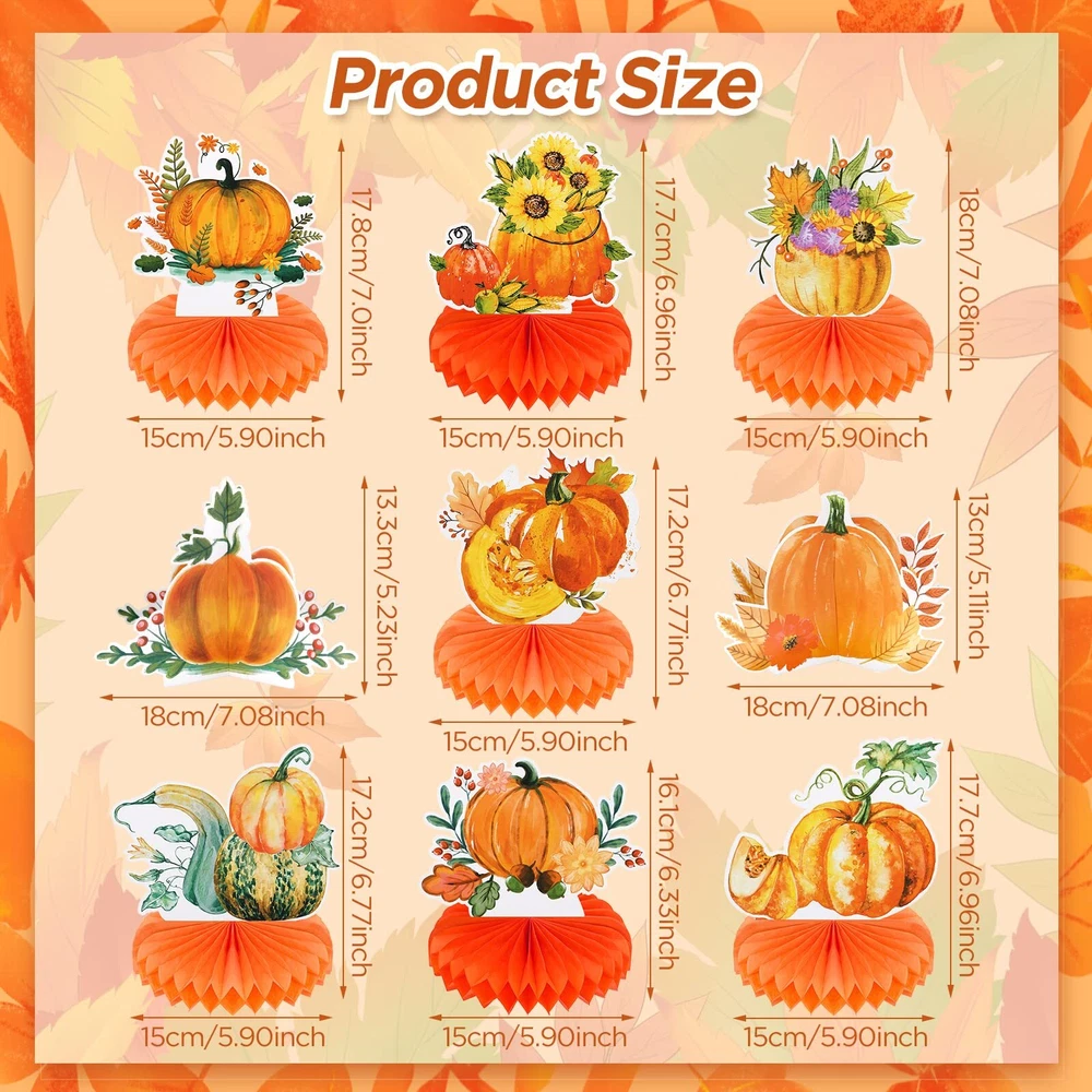 9 Pieces Fall Pumpkin Party Decorations Thanksgiving Party Honeycomb Centerpieces Pumpkin Themed 3D Table Toppers Decor for Autumn Thanksgiving Birthday Party Supplies Specifications: Material: paper Base size: 15 cm/6 inches Notes: 1. Since manual measurement is required, please allow 1-3 cm difference, thank you for your understanding! 2. Due to the difference between different monitors, please note that the picture may not reflect the actual color of the item. Package Included: 9 * Pumpkin Honeycomb decoration 【What You Will Get】:The package will come 9 pieces of Fall pumpkin party decorations honeycomb centerpieces in different pumpkin pattern designs, sufficient quantity and various styles to meet your party decoration needs. 【Fall Party Decoration】:These Thanksgiving party table decorations are combined with pumpkin element and 3D honeycomb table centerpieces design, create a delicate Fall theme atmosphere for your Thanksgiving party, and leave a happy memory for everyone. 【Quality Materials】:These Pumpkin honeycomb centerpieces are made of cardstock material, solid and sturdy, the Fall Thanksgiving party table toppers table decorations are printed with pumpkin patterns on both sides, quality and not easy to fade, which can be applied for a long time. 【Widely Application】:The 3D pumpkin themed centerpiece decorations for tables are suitable for decorating most occasions like little pumpkin themed birthday parties, Thanksgiving, Fall themed party, Autumn party, baby shower table decorations, party photo props, celebration ornaments, etc. Adding more charm and fun to your parties. 【Easy to Assemble】:Step1, tear off the sticker of Autumn pumpkin honeycomb centerpieces table decoration. Step 2, stick the honeycomb ball to a fixed area on the card. Step 3, repeat on the other side of the card. Step 4,finally put it stand on the table. It's so easy that you can save a lot of time. Shipping from the USA All of our products are shipped from the USA, ensuring quick delivery to your destination. Payment We offer the following payment methods: PayPal, credit card, bank transfer, and eBay's secure payment system. Free Shipping & Free Returns Shipping within the USA is FREE. Additionally, any return is absolutely free for you. Risk-Free Purchase You have the option to return an item within 30 days without any justification. We cover the return shipping costs! Fast Shipping We ship immediately upon receipt of payment. Generally, the package is delivered within 2-3 days in the USA. If it takes longer, we will contact you. Quality and Costs Made in Europe, USA, China No customs fees or additional charges Total satisfaction guarantee Invoice with declared VAT available upon request in .pdf format Feedback Your feedback is very important to us. After you pay for your purchase, you will automatically receive positive feedback from us.