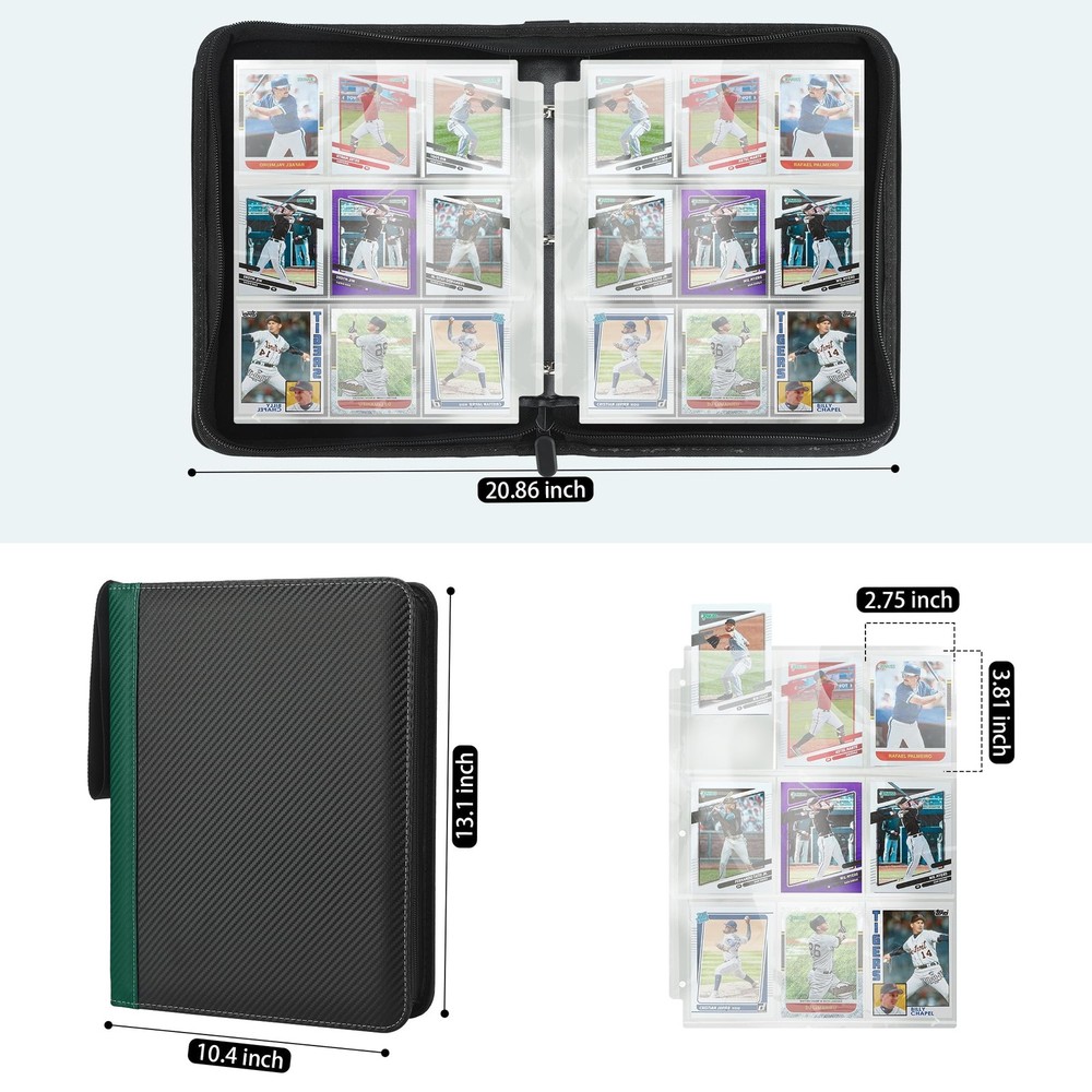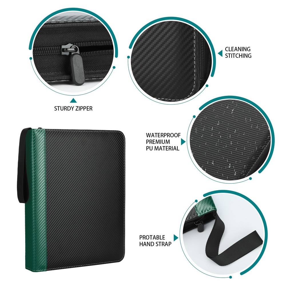Strap Type: Shoulder, Cross-Body gtin13: Does not apply Item Display Weight: 2.34 Item Shape: Rectangular Card Capacity: 900.0 Unit Count: 1.0 UPC: Does not apply Color: Green Target Gender: Unisex Type: Does not apply Model Number: Cxwtcb Number Of Compartments: 9 Package Dimensions LxWxH: 13.19x10.67x2.13 Inches Brand: Tcguard Style: Modern Handle Type: Strap Model Name: Trading Card Binder Occasion: ‎Christmas, Birthday Closure Type: Zipper Weight: 2.23 Pounds Size: 9 Pockets