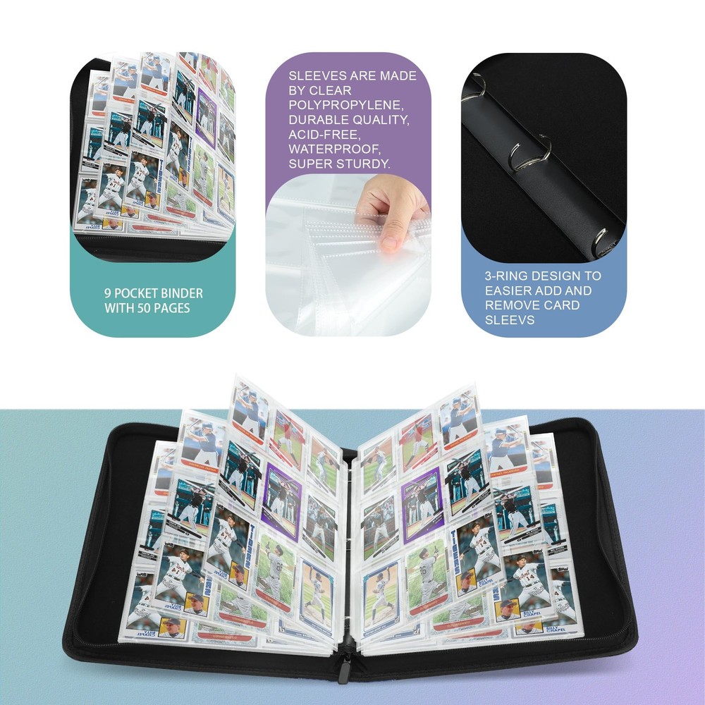 9 Pockets Trading Card Binder with Sleeves Card Organizer, 900 Double Sided P...