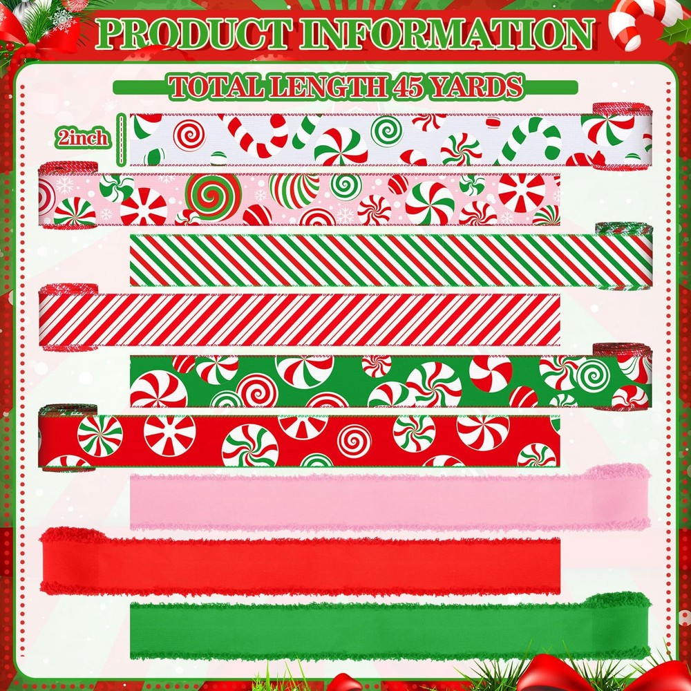 Features: The wired edge of our printed ribbon allows for easy shaping and transforming into bows that hold their shape. This makes it simple to create beautiful looking decorations, whether it's a christmas wreath, or gift wrapping. Whether it's christmas, or simply celebrating the party of christmas, our decorative ribbon is the proper choice for adding a touch of christmas to your occasion. Decorative christmas ribbon is also ideal for sending to your family members, friends, colleagues, classmates and more. Specifications: Material: burlap and wired edge Color: multicolor Size: each roll about 5 yd/ 4.5 meters in length, about 2 inches/ 5 cm in width Quantity: 9 rolls Package includes: 9 Rolls of christmas wired edge ribbon for wreaths (9 styles) Notes: Manual measurement, please allow slight errors on size. The color may exist a slight difference due to different screen displays. Winding risk may exist, please keep away from little kids. There are iron wires at the edge, please be careful to avoid poking risk when opening or using. Ample Quantity and Ideal Size: crafted to meet your decoration needs, our christmas ribbon comes in a set of 9 rolls, providing ample supply for all your needs; Each roll is approximately 5 yards long and 2 inches wide, providing you with ample ribbon to create beautiful christmas crafts and decorations Christmas Terror in Every Design: our wired edge ribbons for wreaths boast Christmas elements; These vibrant and festive designs will add a touch of Christmas to art projects or decoration, bringing the atmosphere of Christmas into your craft Quality You Can Trust: constructed to ensure durability and simplicity in crafting, the craft ribbon boasts quality that you can trust; Made from burlap material, you're assured of structured and sturdy designs; The sturdy construction ensures it won't tear or wrinkle easily, soft and comfortable, easy to keep your crafts in a beautiful shape for a long time; Bend it, twist it, or fold it, the possibilities are simply endless Versatility Beyond: our burlap grosgrain ribbon is versatile and can be applied for various DIY projects and crafts; From christmas themed decorations and wreaths to gift wrapping and party decorations, Use it to trim your Christmas costume, create table runners, fall themed gift wraps, or as ornamental bows Create a Christmas Table Festive Spirit: our wired ribbon is the delicate accessory to elevate your Christmas decorations; Whether you're adorning your front door, staircase, tables, stairs, railings, candles, lights, trees or even creating your own Christmas inspired centerpieces, our ribbon will add a festive touch to many spaces