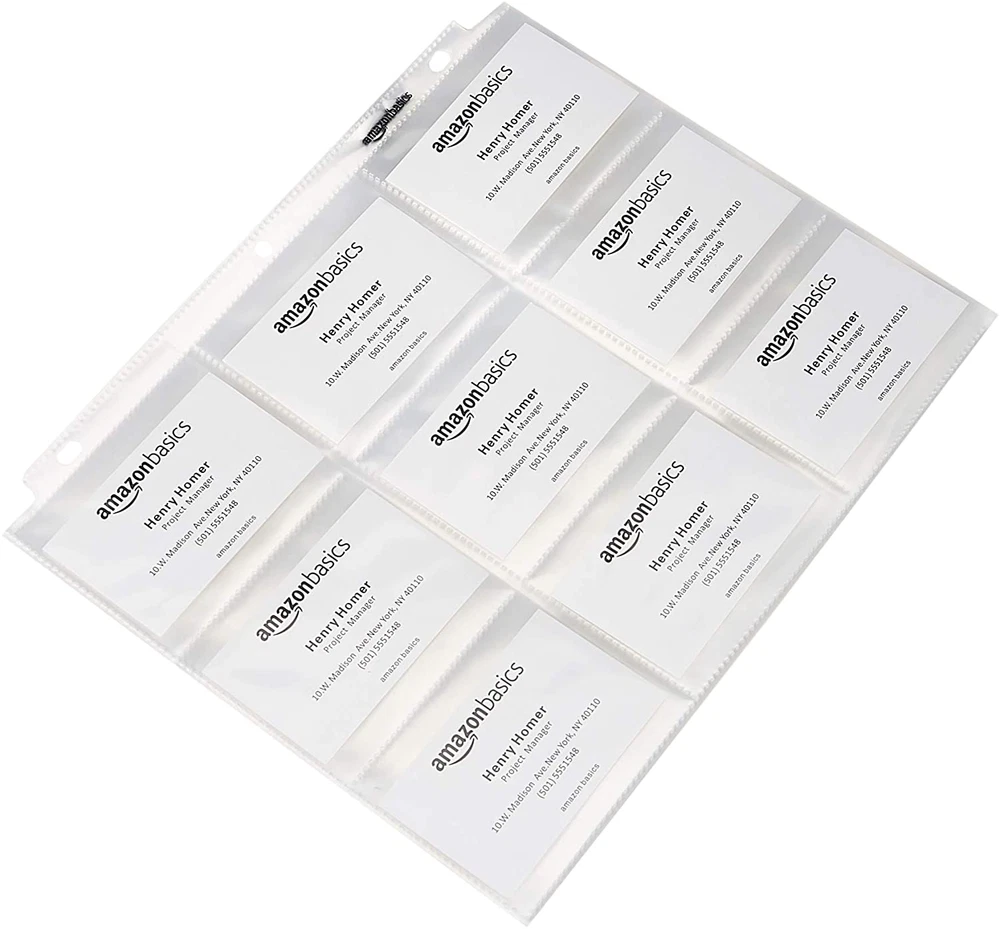 Menu Other Items Feedbacks About Us Contact Us Add To Favorites 9 Sleeve Card Protectors Binder Sheet, 100 Pack, Clear 100-pack of 9-pocket card protectors; keeps business or trading cards securely stored and neatly organized Made of durable clear plastic for strength and see-through transparency; acid-free for archival-quality storage Each page displays up to 18 cards (9 on each side); each top-loading pocket measures 3.7 x 2.76 inches Comes pre-punched for handy storage in a standard 3-ring binder (not included) Each page measures 11.5 x 8.86 inches Product Description Amazon Basics 9 Sleeve Card Protectors Binder Sheet - 100-Pack From the Manufacturer Amazon Basics Item Specification Sheet Size 11.5 x 8.86 inches Number of Items 100 Color Clear Product Dimensions 11.5 x 8.86 x 0.1 inches Material Polypropylene (PP) Material Type Polypropylene (PP) Style Classic Item Weight 1.52 Pounds Size 100 - Pack Dimensions Shipping Returns Additional Info Product Dimensions: 8.86 inches x 11.5 inches x 0.1 inches. Weight: 1.52 lb Fast shipping is very important for us. Our standard shipping service is FREE. Your order will be shipped within 1-3 business days upon full payment received. Most items are delivered within 3-5 business days, however, please allow 3-10 business days. We are shipping only to USA. We only ship to the confirmed Paypal address. We reserve the right to cancel any order for any reason at any time. We are not responsible for undeliverable addresses. We offer a 30 day return policy from checkout winning date. Your satisfaction is guaranteed! If for any reason you are unhappy with your item, just return it within 30 days for a full refund, minus shipping cost. Please contact us prior to initiating a return so that we can issue you a refund authorization. Items defective upon receipt must be packaged in their retail packaging as if new and returned with a detailed description of the problem. Return shipping fees are not refundable. We reserve the right to decline any returns if the above guidelines are not followed. All of our items, unless otherwise stated, will only run on 120 volts. Please check to make sure your country complies with these specifications. If you have a problem or question regarding your transaction please contact us before leaving any type of feedback. We will work with you to resolve any problem you may have.