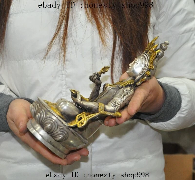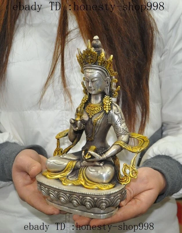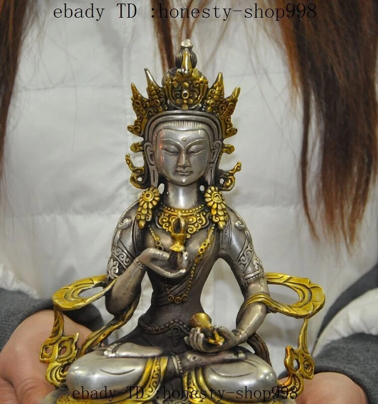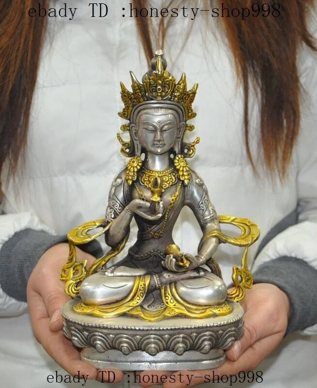 $ 13.28.3-inch Antique Tibetan Bronze Gilt Amitabha Longevity Buddha Statue