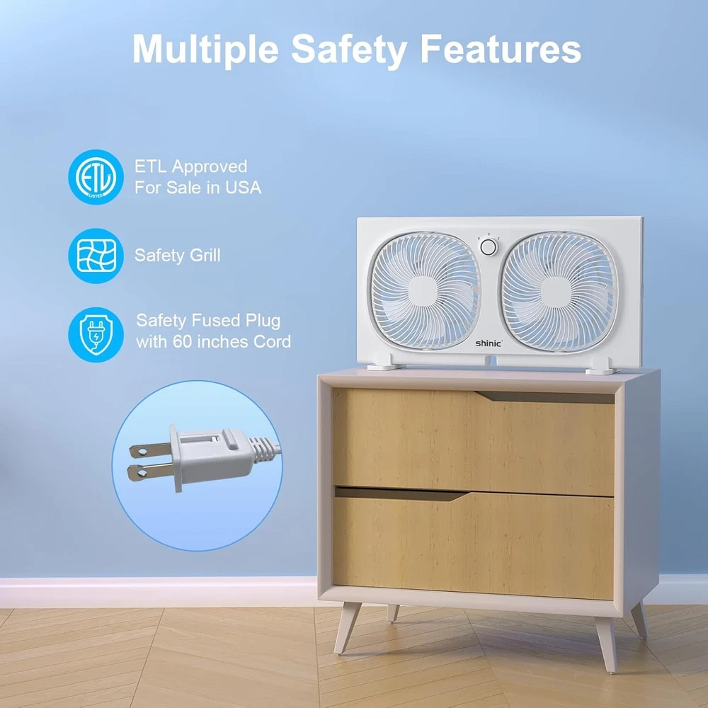 Window Fans for Home Bedroom, Twin Heads, Cooling Airflow, Exhaust