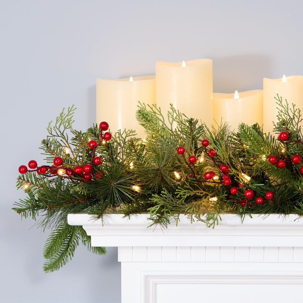 Designed with a Classical branch base, this pre-lit artificial Christmas garland is 9 feet long and decorated with clusters. This garland features over hundred individually crafted branch tips, creating a lush and full bodied hanging decoration that is sure to impress family and friends alike. Suitable as an indoor or outdoor Christmas decoration, drape this garland over any door, window or entryway to add a festive feel to any area of the house. Constructed with sturdy, high quality materials and hypo-allergenic, fire-resistant needles, this garland is built to bring holiday cheer for years to come. At , we believe that special holiday memories don’t have to be far and few between. This Christmas season, let our decorations transform your home while you focus on creating more of those magical moments.