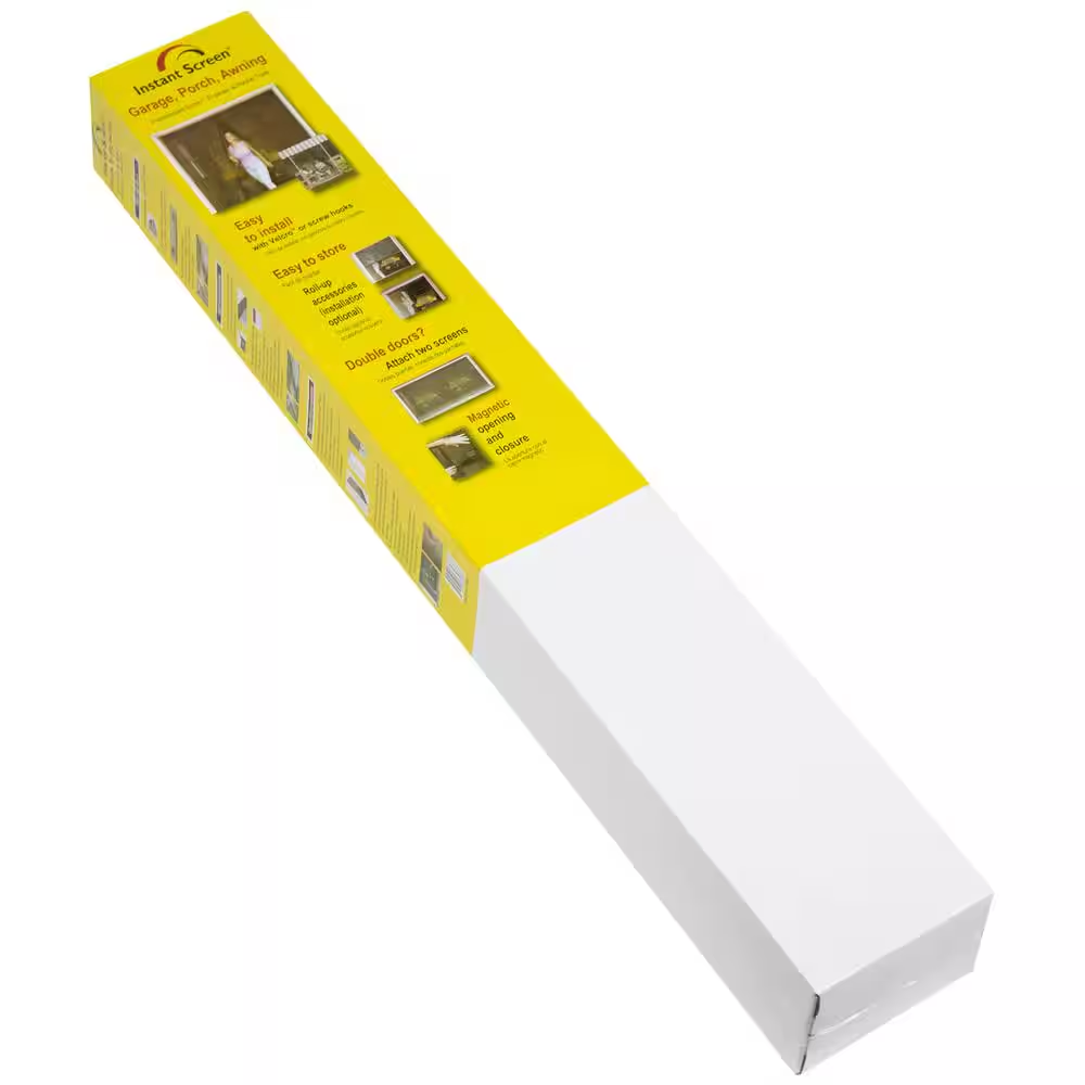 Multiple screens can be attached for larger garages Magnetic closure for easy opening and closing Features an easy-to-install design The Garage Instant Screen has multiple uses, not only for your garage, but also your awning, porch and more. The screen is made of durable black fiberglass screen for protection against the sun and insects. The Garage Instant Screen is the ideal solution for allowing you to work or entertain while enjoying the fresh air. Easy to install with hook and loop or screw hooks Roll-up accessory for easy storage (screw hook assembly only) Very durable black fiberglass screen Magnetic open and closure Attach two or more 9 ft. wide screens for larger garages