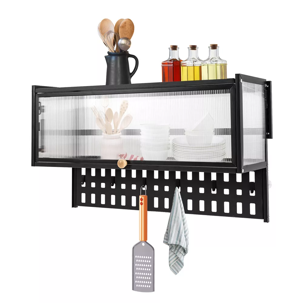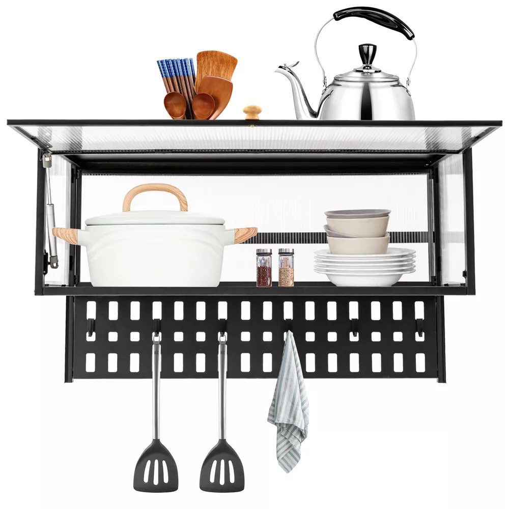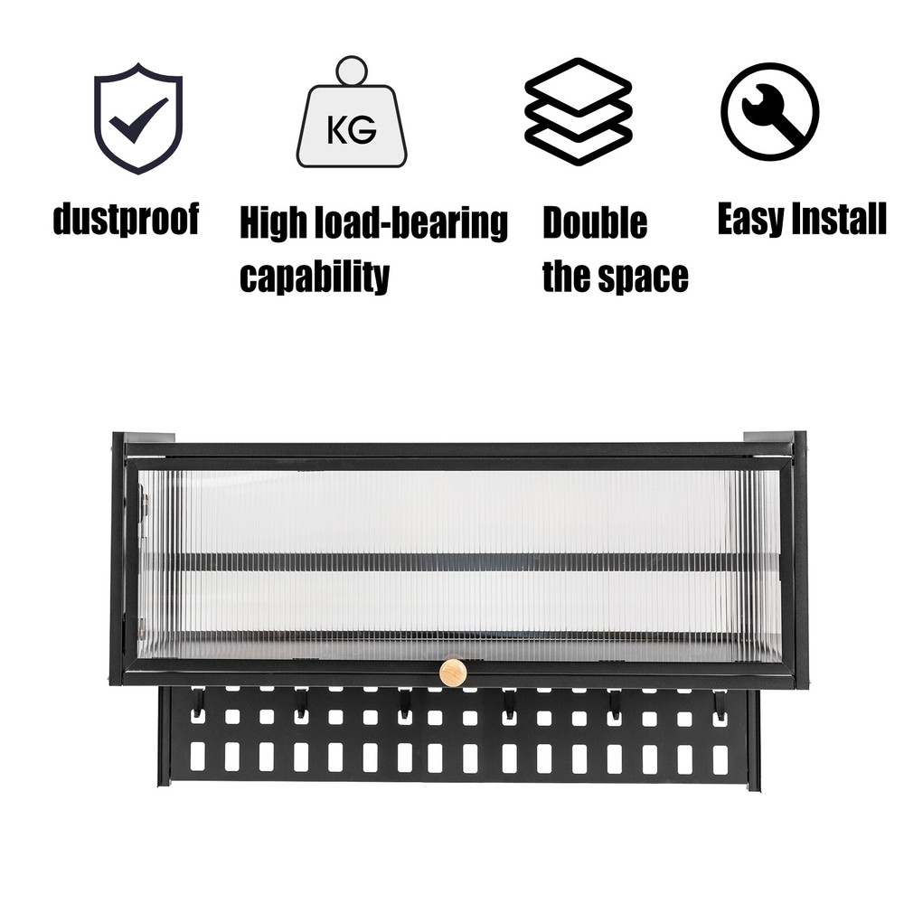 90° Flip-Up PC Wall Cabinet, Hanging Kitchen Wall Cabinet Organizer Wall Cabinet Balcony Kitchen Wall Cabinet Living Room Bedroom Storage Cabinet Flip-Up Door Wall Cabinet Wall-mounted Locker ( Color : Black , Size : 85*28cm ) Description This wall cabinet can make full use of space and become an ornament on the white wall. The minimalist shape design can enhance the style of the room, and the translucent strip cabinet door brings the overall value to a higher level. It is not only a cabinet, but also expresses your pursuit of exquisite life. Key Features High-quality Selection: The high-quality carbon steel and polycarbonate hollow panels, combined with coating technology, make this product resistant to rust and scratches, and suitable for long-term use. Wall-mount Design : The wall cabinet can make full use of wall space, especially suitable for small rooms and can be integrated with various occasions. You can install it at a suitable height for quick access to your items. Worry-free Installation : The equipped suction cups, auxiliary stickers, detailed English installation video, and glues, ensure a stable installation without damaging the wall. Flip-up Design : The hydraulic support rod allows the opening and closing angle to reach 90 ° , making it easier to take items, achieving silent closing and reducing the risk of hitting heads. Maximize Your Storage : Large capacity allows easy storage of kitchen spices, and the flat top can also be used to store items to save space. The hanging board with holes plus five hooks can be used to hang spoons, rags, etc. Hanging things is much neater than if they were scattered in a drawer. High Load-bearing Capacity: This cabinet not only looks good but also has a big load-bearing capacity of about 55lbs , so you can place items as you like without worrying about them collapsing. Beautiful Appearance: The unique textured cabinet door plus the wooden handle demonstrate a unique texture. Meanwhile, the semi-transparent visual effect presents a hazy aesthetic of storage. Easy to Clean : The cabinet door can play a dustproof and antifouling role while the smooth surface of the product also enables easy and fast cleaning, and you only need to wipe away the stains with a towel. Details Solid Back Plate : Enlarged and thickened back plate provides stronger support, so you can use this item with peace of mind. Rounded Edges : The edges of this product have been polished smooth to avoid damage caused by bumping, making it safe and comfortable. Application This wall cabinet is an all-around item and is suitable for the kitchen, living room, office, etc. Specification Material: Carbon Steel, Polycarbonate Hollow Sheet, Wood Surface Treatment: Painting Color: Black, Translucent Special Feature: Flip-up Load Capacity: 25kg/55lbs Hanging Board Load Capacity: 5kg/11 lbs Product Size: 85*28*30cm/33.5*11*11.8in Hanging Board Size(L*W): 85*8cm/33.5*3.1in Package Included 1x Wall-mounted Cabinet 1x Hanging Board 5x Hooks 1x Chinese&English Installation Diagram All Accessories for Assembly Notes: For firmness and safety, hollow walls, gypsum walls, and other walls that cannot withstand gravity cannot be installed with the wall cabinet. Please allow the slight color difference caused by the shooting light an d the 1-3 cm error due to manual measurement, and make sure you do not mind before ordering. Payment Delivery details Terms of sales About us Contact us Payment We accept ebay payment 。 Fees such as import duties, taxes are not included in the item price or shipping costs. These charges are the buyer's responsibility. Delivery details Shipping: 2-9 working days to: USA Terms of sales We maintain high standards of excellence and strive for hundred percent customer satisfaction. Feedback is very important to us. We hope that you contact us immediately before you give neutral or negative feedback, so that we can address your concerns. It is impossible to address issues if we do not know about them! About us Your satis faction is our ultimate goal. We work hard to earn your trust and future business. Our certified technicians have tested each item before shipping. The unit comes with 1 year limited warranty on all manufacturing defects. a) If you receive a defective item, you may return it or ask for a discount. Please contact us within 14 days after you receive the package. b) What you returned must be intact and in its original packaging as re? u. Customer is responsible for shipping costs of the returned item. c) We will cover the cost of shipping back t with the shipping rate indicated in the registration page. We will send you a new unit or refund the full payment you paid. Thank you. Contact us Business Hour Business Hour: Monday To Friday: 8:30 AM to 5:00 PM (Beijing China time) Due to time zones, our reply to your questions may not be immediately. But within above working time, we will reply your email within 24 hours. If it's non-workdays, please kindly be patient and wait till Monday. Please contact us with ebay message. Please feel free to contact us if you have any questions. Monday To Friday: 8:30 AM to 5:00 PM (Beijing China time) Due to time zones, our reply to your questions may not be immediately. But within above working time, we will reply your email within 24 hours. If it's non-workdays, please kindly be patient and wait till Monday. Please contact us with ebay message. Please feel free to contact us if you have any questions. Brand Unbranded Item Height 30cm Item Length 85cm Item Width 28cm Type Wall Cabinet Material Carbon Steel, Polycarbonate Hollow Sheet, Wood Color Black, Translucent Door Style translucent strip Number of Shelves 1 Mounting Wall Mounted Surface Treatment Painting Special Feature Flip-up Load Capacity 25kg/55lbs Hanging Board Load Capacity 5kg/11 lbs Product Size 85*28*30cm/33.5*11*11.8in Hanging Board Size(L*W) 85*8cm/33.5*3.1in On Jul 30, 2025 at 22:39:08 PDT, seller added the following information: