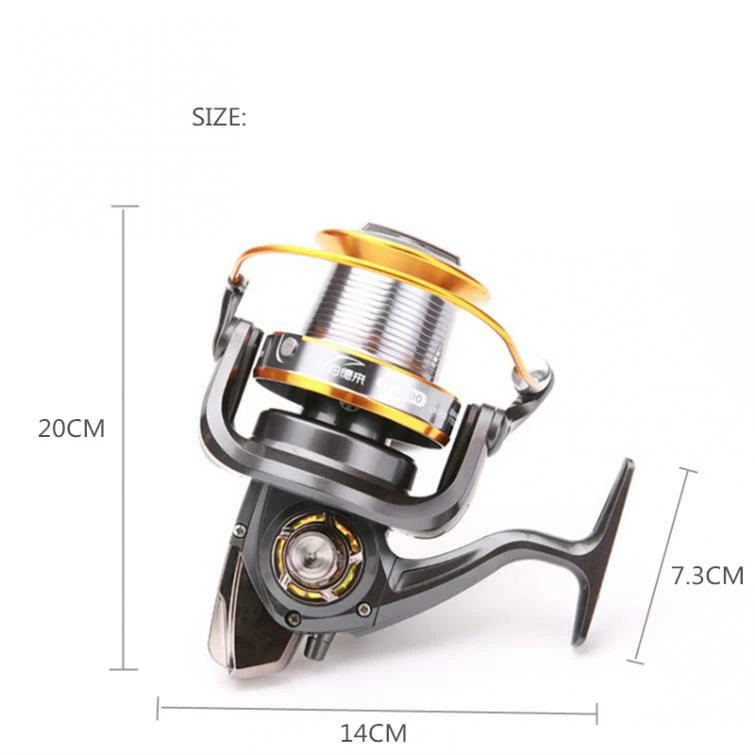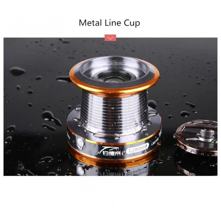 Descriptions: Series: 9000 Hand Retrieve: Right Left Hand Interchangeable Gear Ratio: 4.11:1 Line Capacity(mm/M): 0.35/560 0.45/340 0.5/275 Ball Bearing: 12+1BB Main Color: Gold & Dark Gray Max Drag: 25KG / 55.13LB Material: Aluminum Alloy + Brass Baits Type: Fake Bait Fishing Reels Type: Pre Loading Spinning Wheel Position: Ocean Boat Fishing / Ocean Rock Fishing / Ocean Beach Fishing / Lake / River / Reservoir Pond / Stream Fishing Method: Spinning Brand: DIAO DE LAI Features: - Full metal spool. - Left / right interchangeable collapsible handle. - Fully adjustable cast control with sound. - Excellent line lay oscillation system. - Perfect tool for big fish. Place of Application: Sea Fishing Product Weight: 840 G / 29.63 Ounces Product Dimensions (L*W*H): 140*140*70 MM / 5.51*5.51*2.76 Inches Package Weight: 840.0 G / 29.63 Ounces Package Dimensions (L*W*H): 150*150*80 MM / 5.91*5.91*3.15 Inches Retail Packaging: Yes, Colored Box Package Including: 1 x Fishing Reel