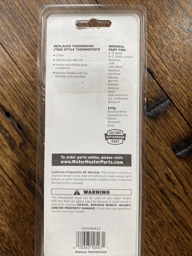 9000507045 Lower Thermostat For Double Element Water Heaters 100108422.