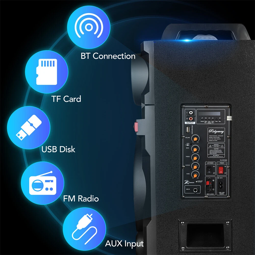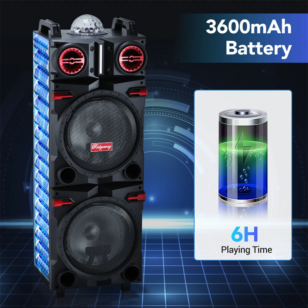 9000W Bluetooth Speaker Dual 10" Woofer Rechargable Party FM Karaok DJ LED AUX Specification: Audio Input: Memory Card/BT/FM/AUX Speaker Dimensions: 2 x 10" subwoofer and 1 x 1" tweeter Power Supply: AC110-240V 50Hz/60Hz Output Power: 80W Frequency Response: 45Hz-18KHz Sensitivity: 85±2dB Play Time:6 Hours Charging time:5Hours Battery Capacity: 12V/4.5A rechargeable battery Colour: Black Product Unit Net Weight: 15.3kg/33.73LBs Product Unit G.W.: 16.2kg/35.71LBs Packing Size: 42*34*110cm/16.54*13.39*43.31inch Feature: Easily Connectable: Bluetooth may be your favorite connection, and we understand, but there are times when other options are needed. With you in mind, our Speaker has jam-packed this ultimate party speaker with connections to ensure you have every option you need. This Speaker offers USB, SD, and AUX Inputs. It also features a Microphone Jack for your wired microphone, or you can connect the included wireless microphone and feel free to move around. Easily Portable: Hard mounted top handles, and Dual Rolling Wheels make this unit easy to transport and handle. Designed with your convenience in mind so that you’ll never have to leave this speaker behind. Strong Clear Brilliant Sound: This speaker won’t impress you with it’s size alone. The 10 Inch Double Subwoofers offer a thunderous and thrilling 9000 Watts of P.M.P.O., ensuring that your guests will be moved by the music even if they lean against the walls. All-Day Battery Life: Keep the music going with a robust 12V 4.5A rechargeable battery, offering extended playtime for all your events without the need for constant recharging. Colorful RGB Lights : Our Bluetooth karaoke speaker comes with two large disc-like RGB lights that change color and shape as music plays. It will arouse kids' interest and distract their attention from videos & games. Dynamic lights also let you feel energized and relaxed. TWS Function: Two speakers interconnect via Bluetooth and play together, offering enhanced bass and engaging atmosphere. Package Included: 1 X 9000W Dual 10'' Bluetooth Speaker 1 X Wired Microphone 1 X Remote Control 1 X Audio Cable 1 X Power Cord 1 X Manual Shipping Payment Return & Refund policy Customer Support - Contact Feedback Shipping FREE SAME BUSINESS DAY MONDAY- FRIDAY SHIPPING FROM USA. All orders and payments received before 4PM EST (1PM PST) will be shipped the same business day. No shipping on Weekends or US Public Holidays. No responsibility for any custom duty Shipping information will be updated when available. Payment 1. All payments must be prepaid before shipping. 2. We only accept payment via PayPal. Please kindly check if you can do the payment via PayPal before placing an order. Return & Refund policy (1) We stand behind our items and offer 30 days warranty. All items are in brand new condition unless specified otherwise elsewhere in the description. (2) All returns - defective or otherwise - have to be preauthorized. Please contact us to get an authorization and returning address before sending the item back. If an item is returned because of an undeliverable shipping address, buyer agrees to pay the cost for re-shipment. (3) Please note that If the return/replacement is not a result of our mistake (not defective or wrong item), the buyer is responsible for return shipping, as well as a 20 percent restocking fee. (4) Replacement or refund will be made upon receipt of the returned item. If you do not want to wait for the replacement, you can just reorder one and then send the first one back for a refund. Customer Support - Contact Please do not hesitate to CONTACT US. You can message 24/7 on eBay for all questions and inquiries. We will get back to you within 1-2 business days at the latest. Feedback We strive to provide the best service and reliable products for every customer, however, accident may happen sometimes, please contact us to resolve any issue before leaving a negative feedback.
