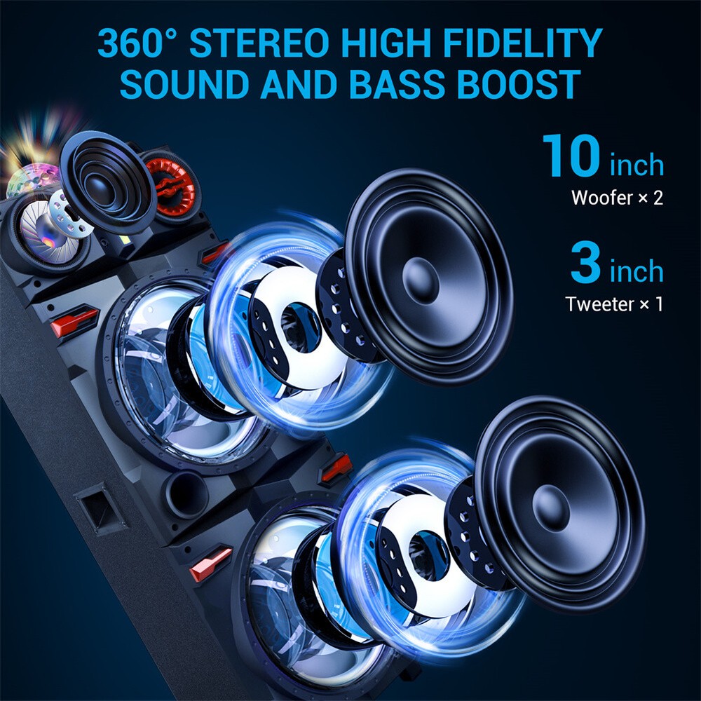 $ 42.248000W Portable Bluetooth Party Speaker with Subwoofer Heavy Bass Sound System and Mic