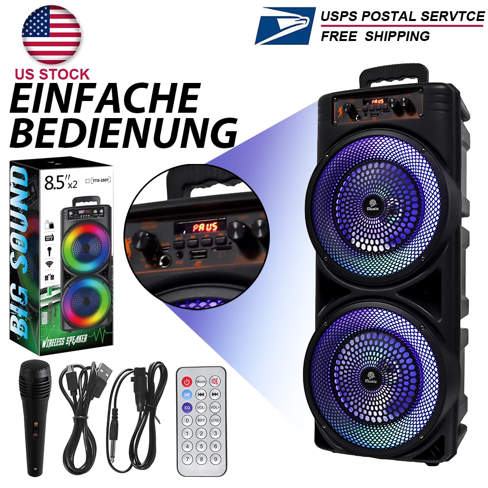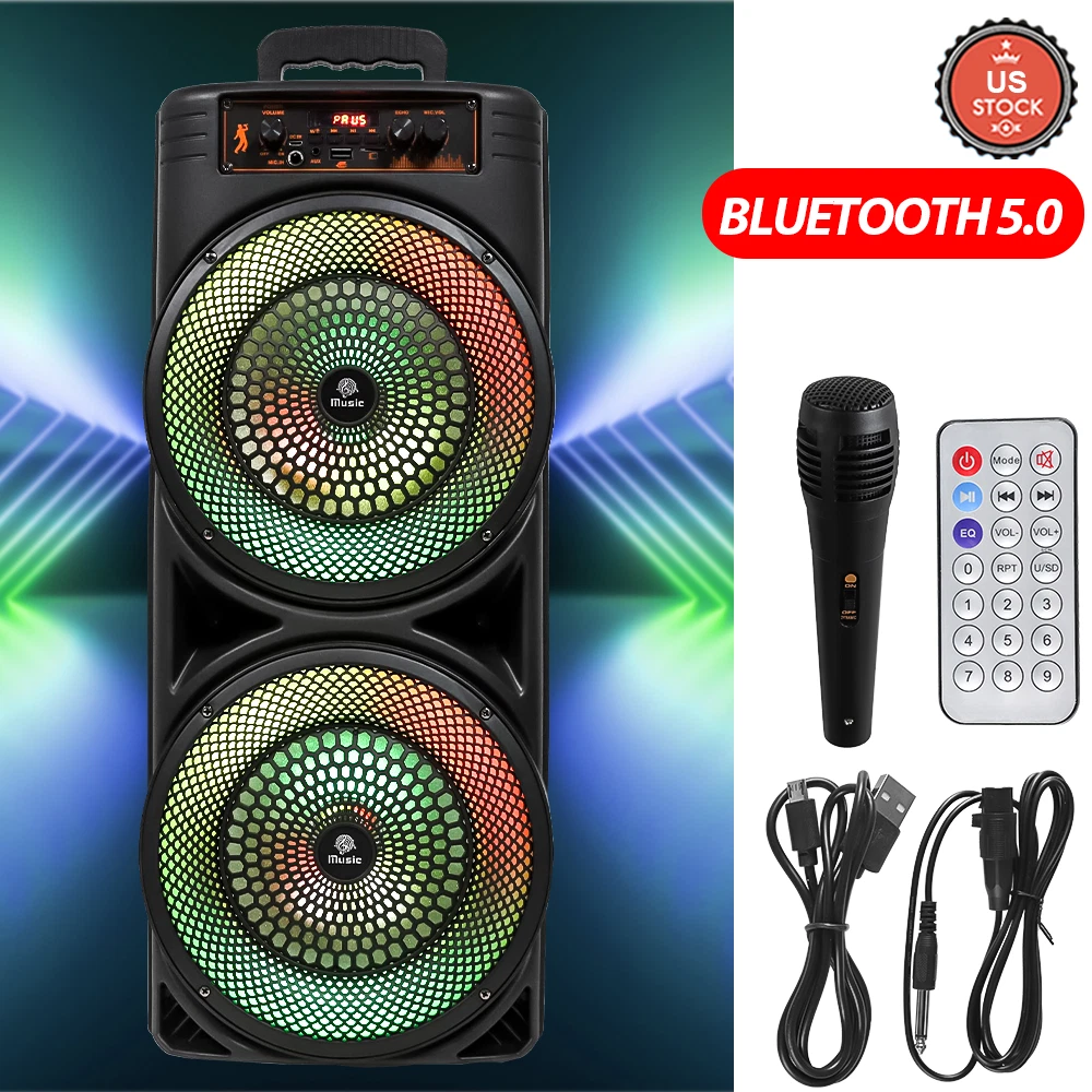 9000W Portable Bluetooth Speaker Sub woofer Heavy Bass Sound Party System w/ Mic Description: Dual Speakers & Powerful Bass: Highly efficient woofer produces deep and low bass while the mids and highs remain loud and clear even when the volume is cranked up. Smooth Bluetooth Connection: Allows you to stream your favorite music straight from your smartphone, iPod, tablet or any other suitable blue-toothe device within 10M/32 feet. Just move about and keep the music going with no cable and no hassle. Additional Audio Sources: when Bluetooth device isn’t available, you can pop into a flash disk or micro SD card, or connect to your 3.5mm audio device like MP3/MP4/5 player, etc. to play your favorite tunes. Portable & Rechargeable Designed: Built-in 2400mAh rechargeable battery offers up to more than 3-4 hours of playtime, with heavy-duty top handle, it's easy to take this speaker anywhere you go and throw up a party. Specification: Bluet. version: 5.0 Audio Input: USB/TF/AUX/FM/BT/MIC Built-in Battery: 18650 li-ion battery Battery capacity:2400mAh Charging time: 2-3 hours Play time: 3-4 hours (fully charged) Input Voltage: AC 100-240V 50/60Hz Charging interface: Micro USB. Speacker Size: 59.5*24.7*20cm/23.4 *9.72*7.8 inches Color: Black Material: molded PP plastic cabinet USE INSTRUCTION: 1. Connect the marked power cable according to the connection instructions on the rear panel. 2. Make sure the voltage is correct. insert the power cable and turn on the power switch button 3. Adjust the function keys to achieve the best sound effect you are satisfied with Product List: 1 * Speaker 1 * Remote control 1 * 2 meter cable microphone 1 * Power cable 1 * User manual Payment Delivery details Return Contact us Feedback Payment We only accept the paypal payment methods. All major credit cards are accepted through secure payment processor PayPal.(* If you use e-check on PayPal, delivery may take longer, as we will hold your order until your e-check clear) Delivery details Item will be shipped within 2 business day after confirmed payment. (Not including weekend or public holidays) Please verify your address during checkout. We are not responsible for any wrong or undeliverable addresses. All items will be checked strictly before shipping and it will be shipped to your PayPal address. Estimated delivery time is 1-5 working days (Not including weekend or public holidays) Delivery times may vary particularly during peak periods or unexpected weather conditions. In event of a very unlikely slight delay, your patience would be highly appreciated. We do not provide pick up or local collection service so far. Return We accpet return within 30 Days of dispatch. For exchange buyer MUST return the defective item for 1 to 1 exchange, return cost due to buyer. For free shipping means we paid the shipping fee on your behalf, that fee will be deducted. In case return cause by wrong buy, return postage will be at buyer side also. Please contact us immediately about any your return before shipping back the Once the item has shipped the regular return policy applies. Notifying us ahead of time will help us to ensure that your return is dealt with promptly upon arrival. Contact us We guarantee 100% Buyer Satisfaction. We are increasingly expanding international markets based on high quality products, excellent service, reasonable priceboas and timely delivery. Please contact us at any time for more information.We work hard to make sure EVERY CUSTOMER 100% approvingly. Feedback Very appreciated for your support. I hope you are happy with your purchase. We maintain high standards of excellence and strive for 100% customer satisfaction! Feedback is very important to us. We request that you contact us immediately BEFORE you give us or feedback, so that we can satisfactorily address your concerns. If you have any problem, please feel free to contact us via ebay message, we will reply your email within 24 hours (except weekends and holidays). We will do our best to solve your problem as soon as possible. We appreciate your continued patience and willingness to work with us. Thank you for choosing us and have a great day!