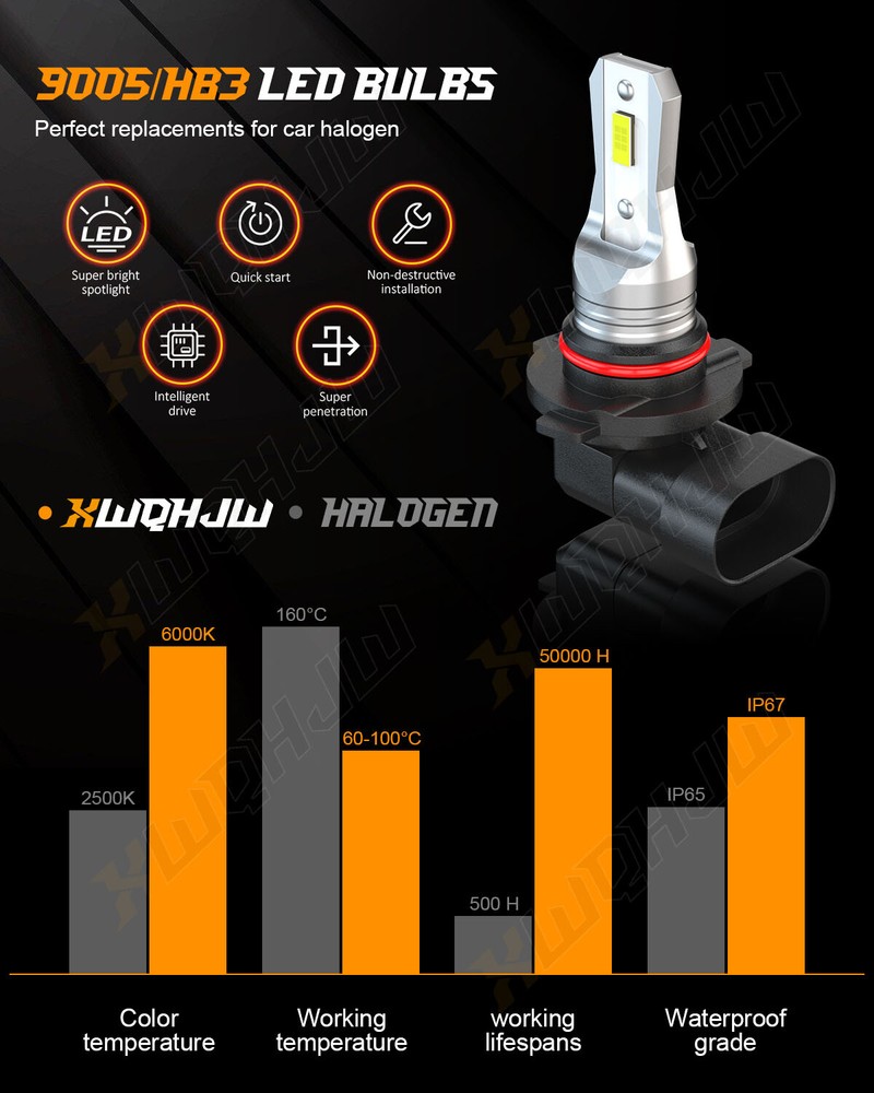 XWQHJW X3plus Series LED Headlight Fog Light Kit [All-in-One Conversion Kit] ● 500% Brighter: Equipped with high luminous efficacy CSP chips. 10000LM/pair, 500% Brighter than standard halogen. X3 LED headlight bulbs ensure the clarity of vision allows drivers easy to react to sudden movement. Effectively illuminate wildlife, falling rocks and obstacles. Huge improvement for road safety. ● Ideal Beam Pattern: XWQHJW LED bulb features 0.12inch slim led chips distance design that almost can emit 360 degrees illumination angle. Super focused beam pattern as stock halogen lamp, no dark spots or glare to oncoming drivers, avoiding scattered light problem to ensure safety. ● 50,000 Hours Lifespan: Efficient cooling system speed up heat dissipation to ensure LED headlight bulbs superior performance, lifespan up to 50,000 hours. ● 5 Mins Quick Install: Built-in driver and non-polarity plug, 1:1 same filament position as stock halogen. LED headlight mini size design for higher compatibility in factory housing. No modification required,easy installation in 5 mins. Plug & play! ● Superb Performance: CANbus ready and fit with 99% vehicles without issue. Integrated with EMC chip, no radio interference. IP67 waterproof feature makes it work perfectly on any extreme weather, like rainy day, snowy day, foggy day, hazy weather,etc. Key Features How Do I Know These LED Bulbs are Right for My Vehicle? Plese check the size on Ebay fitment guide system ( Ebay filter system may not be up to date. ) Plese check your vehicle user manual or original halogen bulb, the part number is marked above. Plese search "automotive bulb look-up" online, and enter your vehicle info to find out the correct size. Or in 'Customer questions & answers', write down your vehicle year, make, and model, we will help you check. XWQHJW Q&A RETURNS SHIPPING PAYMENT CONTACT US XWQHJW Q&A Q1: Will this bulb fit my vehicle? A1: We can match almost any vehicle to one of our bulb sizes. eBay only lets us include some vehicle fitments per listing, but if your vehicle does not show up on the compatibility table at the top of our listings, welcome you to contact us for free consulation before purchasing a product. Q2: My item has not arrived, what's taking so long? A2: Sometimes items take longer than expected, especially if it’s going far or to rural area. Check with your post office to see if your item has been held up. Sometimes Royal Mail will not update a tracking number until it has arrived at its destination. If your item still don't arrive after a few days, let us know so we can double check for you and help solve it asap. Q3: My bulbs won't fit, help! A3: Special bulb holder may be required. See if you can take the holder from the stock bulb. If not, let us know. The bulb size may be wrong, double check the item you received with the item you ordered. Do you have an aftermarket lighting housing? These may not be perfectly fitted for aftermarket bulbs and will require some manual modifications. Q4: Neither side lighting up? Both sides flicker, hyper flash, or work inconsistantly. A4:Check the light fuses, and then check the ballast plugs to insure correct installation. If this doesn't work, there may be a voltage problem with the vehicle. You probably just need a relay or capacitor. Even though some bulbs are builtin resistors, they may still need a decoder. Q5:Why after installing the bulb, there have the flicker/error message/radio interference? A5: Some car's system is sensitive to the led bulb, we can send the decoder/resistor to help you solve the problem. RETURNS (1) We offer 60 days return policy. Please contact us within 60 days t from the date you receive your order if you have any issues with the product or want return .Refund will be send after we got your resend package. (2) All returned items should be in the original packaging , return tracking information should be provided. (3) Buyer is responsible for return shipping cost due to the problem not caused by item quality itself. (4) Items to be returned must be in resalable condition, for example: Item do not fit your vehicle perfect The item arrived be broken Parcel Lost If you have problems with the above issue, please Contact Us immediately. SHIPPING Domestic(U.S.) Shipping All items will be shipped out within 1 or 2 business days with cleared payment. Please included your phone number to the payment note for prompt and secure shipment. Tracking numbers for all orders are added to eBay once they have been dispatched; please login to eBay to find the tracking information for your order. Most items are shipped USPS first class mail, delivery usually takes just 4-6 business days. Additionally, we do not ship on weekends. International Shipping Puerto Rico: As we use standard USPS, PR is considered a US territory for mailing purposes, and can be selected as such at checkout. Shipping will be domestic U.S. rates. For Canada & Mexico or other countries We use the eBay's Global Shipping Program. Once you’ve paid for your item, we'll send it to the global shipping center within 1 or 2 business days. From there, it's sent to you. Lost Shipments For non-signature required shipments: If the tracking information that corresponds to a shipment confirms that the product was delivered to the intended address, the customer assumes all responsibilities and liabilities for the receipt of the shipment.The Customer is the one who provided XWQHJW with the ship to information, and in doing so absolves XWQHJW of any liabilities for missing or stolen deliveries. Customs Fees for International Shipping Shipments are marked with the value of your purchase price. International customers are responsible for any tariffs or customs fees that may be associated with their shipment. Please check your country's laws and regulations before your purchase. PAYMENT Variety of payment methods are accepted, such as credit, debit, gift cards, Apply pay, Google Pay, Paypal and Paypal Credit. We only