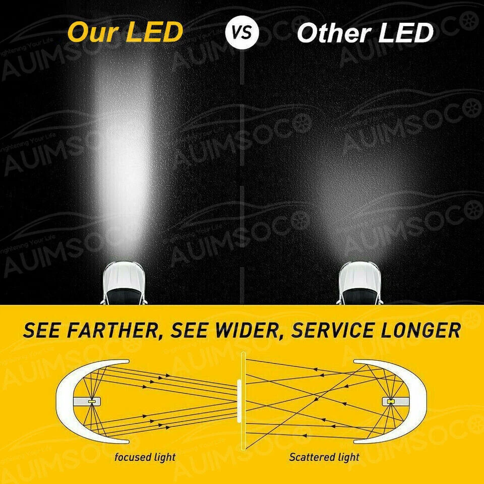 Product Advantages: 9005 (High Beam) + 9006 (Low Beam) High brightness High temperature resistant High purity of luminescence Good stable performance Built-in Driver Ballast Instant on fast cooling Energy saving environmental Long lifespan(>50000hr) Interchange Part Number: Use for high Beam, Low Beam, DRL or Fog Lights… LED Type: 6Pcs Led Chips Each Bulb Other Part Number: 6000K (Xenon HID Pure White) Head Light Lamp Bulbs Beam Angle: 360 Degrees Placement on Vehicle: Left, Right, Front Color: 6000K (Pure White Color) Condition: 100%Brand New/ Never Used Need additional Parts or Modification? 100% Integrated Design, Plug and Play. (Few vehicles may require load resistors to stop flickering or fix error message) Package include: 4x LED Headlight Bulbs 9005 (High Beam) + 9006 (Low Beam) Features: 1.Each Bulb have 2 sides of Super Bright LED Chips 2.Complete Kit: No Other Ballast/Driver Required Just Plug and Play - Newest Technology 3.Beam Angel: 360 Degrees 4.Color Temperature: 6000K Pure White 5.Smart Efficient Cooling System, Fast Heat Dissipation 6.High quality Aluminum heat dissipation ensures the secure temperature range 7.Low Power Consumption than Halogen bulb or Hid Kit, Energy Saving 8.Low Voltage Protection, High Precision Constant Current driver Chip 9.Shakeproof and Long lasting up to 50,000 Hours. 10.Easy installation, Plug and Play, NO modification required 11.Operating Temperature: -40°C ~ +80°C Automotive LED headlamps advantages: 1. LED lights than traditional halogen energy, more power. 2. Xenon lamp brightness and proximity , but the LED lights light up without delay, to enhance road safety. Instant start no strong currents impact , effectively protecting the car comes with a battery , improving battery life of more than 30%. 3. Fast cooling , the appearance of the most advanced design , thermal structure ingenious and reasonable. Less warranty, power driver with wide voltage constant current mode , the car can respond to a variety of voltage instability , the effective protection of normal use Led efficient and simple structure . Fewer Components damaged, repair the probability is very low , compared with HID ballast repair lower than 80% . 4. Heating temperature is low , protect the car . Xenon working temperature up to 800 ° -1000 ° , the main reason for the car ignition . 5. LED car headlights simple structure, fewer parts than xenon lamps, significantly lower than the xenon lamp failure rates ! 6. Automotive LED headlamps color temperature balancing. The Xenon bulbs in the same color to clear , about 6000K-6500K. Install Caution 1. As a safety precaution, make sure that the car has had time to cool down properly before starting the installation process. 2. Put the vehicle into park or make sure it is securely in gear. 3. Make sure to have the ignition turned off and the keys removed. 4. Be careful to avoid burns, especially when turning on or off the vehicles lighting. 5. Be careful to avoid crushing or cutting the bulbs. Also make sure to not touch the bulbs with your fingers, as this will cause blotting. 6. Fully examine the connection of the contact points, ports and the wires as faulty connections can cause lighting problems. 7. Make certain that the end of the bulb does not come in contact with the interior light shield of the headlight when adjusting the bulb. Brand New High Quality with Reasonable Price Fast Ship from KY or CA within 1 business day Tracking# Is Available With Free Shipping 60 days money-back guarantee & free return