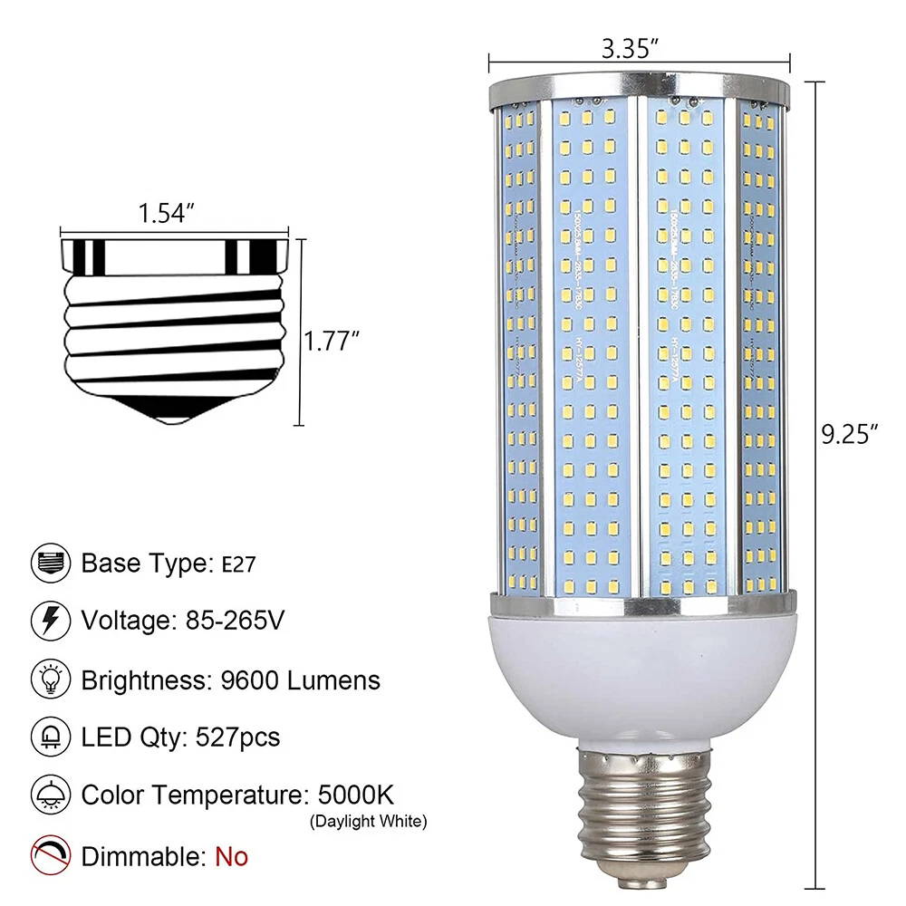 Product Description Description: LED corn light bulb can emit 5000k daylight white light, providing you with a bright work or living conditions. Feature: 80W LED Corn Light Bulb help you reduce more than 90% electricity bill cost by replacing your 600W incandescent bulb. 50,000 hours long lifespan Super stable quality and extended service life. It can serve for you up to 23 years with five hours use per day. 9600 lumens super bright& wide application Our corn bulb turns on instantly with no delay, lighting up every corner of your room with an incredible minimum of 120lm/watt.Unique design, corn lamp shape to achieve 360° shining. E26/E27 medium base for easy installation. Widely used in garage, warehouse, garden, workshop, courtyard, patio, barn, shopping mall, supermarket, station, street, school, hospital, restaurant, hotel etc. led corn light Constructed with 1070 cold forged aluminum and thermal conductivity 236W/mK,ensuring our LED corn bulb work in -4°to113°F.Intelligent IC constant current driver,ensure the lamp stable and durable working status. Specification: Voltage: AC 85V-265V Wattage: 80W LED Qty: 527 pcs 2835 LED Brightness: 9600 Lumen Color Temperature : 5000 Kelvin, Daylight White Bulb Life: 50000 Hours Socket: E26 Base Emitting Angle: 360 degrees Wide Application LED corn cob light widely used for Home, Backyard, Indoor , Garage, Shopping Center, Factory, Warehouse, High Bay Barn,Decoration, Photography, Roadway Lighting, etc. About Us Payment Shipping Terms Returns Contact Us We are NOT selling products. We are selling SERVICES! This is our philosophy in this ebay business. Our goal is to provide excellent before and after sales services to all our customers. If there is any issue about the item, please contact us before leaving feedback. Working time: CST+8 9:30 to 18:30, Monday to Saturday We will much appreciate with fast payment ,thank you so much! 1. We ship from USA Stock . We will provide a tracking number after shipping. 2. We will process and ship the package within 1 business days. If you have any issue with the transaction, please contact us before leaving Negative feedback. We will respond and solve your issue ASAP. We accept return, please contact us directly for return information. Please don't file return case before contact us. Please contact us via eBay Message .Thank you so much ! About Us We are NOT selling products. We are selling SERVICES! This is our philosophy in this ebay business. Our goal is to provide excellent before and after sales services to all our customers. If there is any issue about the item, please contact us before leaving feedback. Working time: CST+8 9:30 to 18:30, Monday to Saturday Payment We will much appreciate with fast payment ,thank you so much! Shipping 1. We ship from USA Stock . We will provide a tracking number after shipping. 2. We will process and ship the package within 1 business days. Terms If you have any issue with the transaction, please contact us before leaving Negative feedback. We will respond and solve your issue ASAP. Returns We accept return, please contact us directly for return information. Please don't file return case before contact us. Contact Us Please contact us via eBay Message .Thank you so much ! powered by