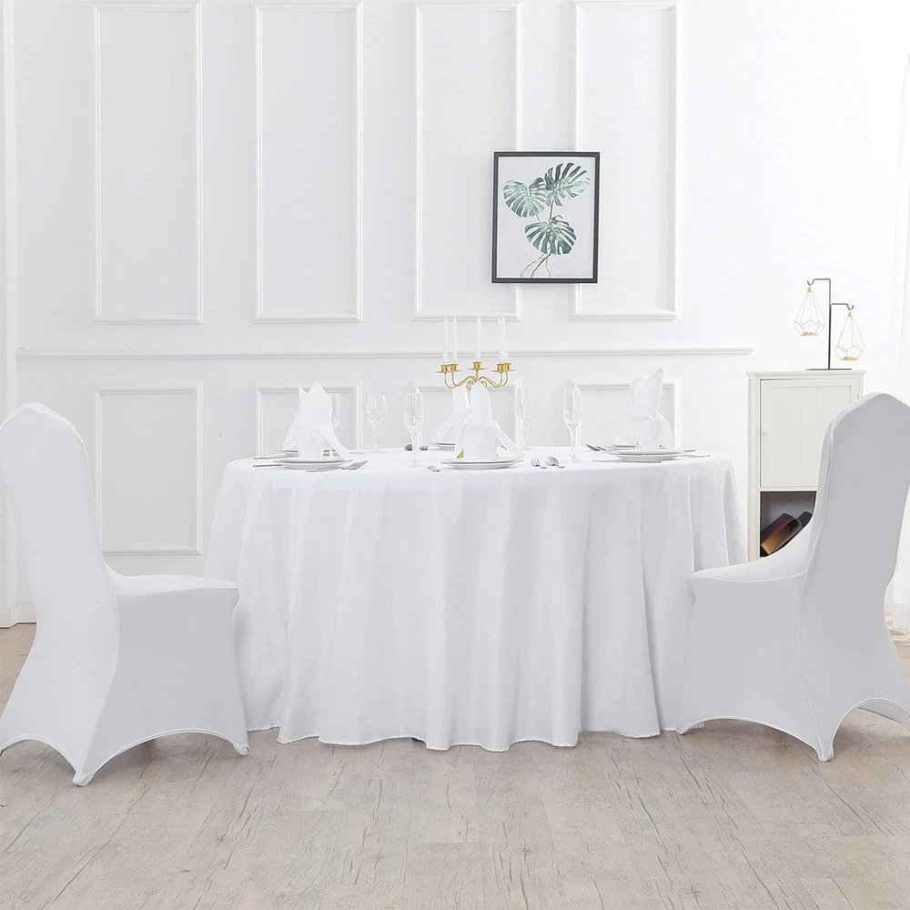 This 90-inch round polyester tablecloth is a fantastic choice for any event! The material is durable, holds its shape well, and stays vibrant even after multiple washes. Perfect for weddings, parties, or everyday dining, it adds a clean, elegant touch to any table. The white color is crisp and versatile, blending seamlessly with any decor. Plus, it's easy to care for—just toss it in the wash! Great quality, fast shipping, and excellent customer service make this a must-have. Highly recommend!