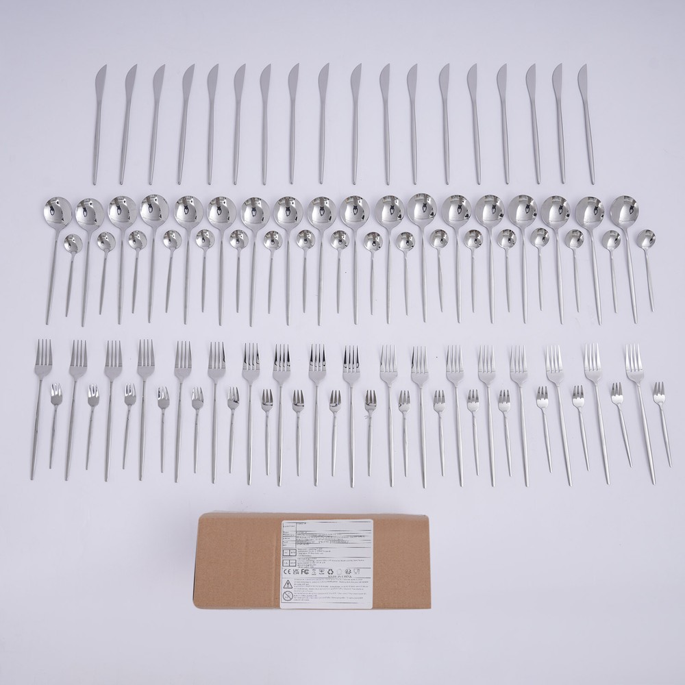 90PCS Cutlery Set Cutlery Set Kitchen Cutlery Set Sturdy and Durable NEW Description Our cutlery set is not only designed for ultimate aesthetics but also carefully considered in terms of practicality. Each individual piece undergoes stringent quality control to ensure its durability and comfort, making it ideal for both everyday family meals and special occasion banquets. The selected materials not only ensure the safety and hygiene of the tableware but also give them a unique texture and luster, making every use a pleasure. Key Features Sturdy and Durable: It is made of high-class 410 stainless steel with a polishing treatment, which is eco-friendly, odorless, anti-corrosion, and rust-resistant, ensuring its beauty and long-time use. 90 Pieces: This set includes dinner forks, salad forks, dinner spoons, teaspoons, and knives, so you can enjoy your meal with a wide variety of cutlery. Economical and Practical: With it, you can enjoy a variety of food on the table, and the 90-piece package can also be well suited for parties or business meals, very cost-effective. Exquisite Appearance: The silver color with a smooth exterior makes it look generous and elegant. It will shine under the dining room lights and become the most exquisite setting on the table. Effortless Clean: Thanks to its smooth surface, simple construction, and machine-washable features, you can clean it with ease. Ready to Go: The one-piece construction allows you to use it directly after receiving it, which is very time-saving and convenient. Ideal Gift: Thanks to its practicality, it will make a fine gift for family, friends, and loved ones on Christmas, Father's Day, Mother's Day, birthdays, anniversaries, and holidays. Customer Service: We aim to provide quality products and services. If you have any problems, please feel free to contact us. We will reply and solve the problem for you as soon as possible. Details Rounded Corners: The rounded edges are burr-free, which is comfortable to touch and enhances the safety of use. Comfortable Handle: The curved design of the ergonomic long handle is properly weighted and balanced to ensure a comfortable grip and no fatigue from prolonged use. Sharp Dinner Knives: The table knife has a toothed edge for easy cutting of food, while the compact tip facilitates precise cutting. Rounded Spoon Head: It is widened and deepened to make it easier for you to scoop soups, cakes, creams, etc. Application It is suitable for any family gathering, party, restaurant, hotel, cafeteria, camping or wedding reception, both residential, and commercial. Specification Material: 410 Stainless Steel Color: Silver Style: Modern Process: Polishing Number of Pieces: 90 Is Machine Wash Safe: Yes Dinner Knife Length: 22cm/8.66in Dinner Fork Length: 21.5cm/8.46in Dinner Spoon Length: 20.8cm/8.19in Teaspoon Length: 13.1cm/5.16in Salad Fork Length: 13.5cm/5.31in Single Dinner Knife Weight: 42g/0.0926lbs Single Dinner Fork Weight: 24g/0.053lbs Single Dinner Spoon Weight: 33g/0.0728lbs Single Teaspoon Weight: 12g/0.0265lbs Single Salad Fork Weight: 11g/0.0243lbs Packing Size: 26*15*5cm/10.24*5.9*1.97in Net Weight: 2.19kg/4.83lbs Gross Weight: 2.3kg/5.07lbs Package Included 18* Dinner Knives 18* Dinner Forks 18* Dinner Spoons 18* Teaspoons 18* Salad Forks Notes 1. Please be careful not to scrape and wash with hard objects such as wire balls to avoid scratches on the tableware. 2. Please note that it should not be placed in high temperature, strong acid, strong alkali, or solution soaking. 3. After washing the utensils with water, dry them with a cloth and do not place them in a humid and corrosive environment. 4. Please allow the slight color difference caused by the shooting light and 1-3 cm error due to manual measurement, and make sure you do not mind before ordering. Payment Delivery details Terms of sales About us Contact us Payment We accept ebay payment 。 Fees such as import duties, taxes are not included in the item price or shipping costs. These charges are the buyer's responsibility. Delivery details Shipping: 2-9 working days to: USA Terms of sales We maintain high standards of excellence and strive for hundred percent customer satisfaction. Feedback is very important to us. We hope that you contact us immediately before you give neutral or negative feedback, so that we can address your concerns. It is impossible to address issues if we do not know about them! About us Your satis faction is our ultimate goal. We work hard to earn your trust and future business. Our certified technicians have tested each item before shipping. The unit comes with 1 year limited warranty on all manufacturing defects. a) If you receive a defective item, you may return it or ask for a discount. Please contact us within 14 days after you receive the package. b) What you returned must be intact and in its original packaging as re? u. Customer is responsible for shipping costs of the returned item. c) We will cover the cost of shipping back t with the shipping rate indicated in the registration page. We will send you a new unit or refund the full payment you paid. Thank you. Contact us Business Hour Business Hour: Monday To Friday: 8:30 AM to 5:00 PM (Beijing China time) Due to time zones, our reply to your questions may not be immediately. But within above working time, we will reply your email within 24 hours. If it's non-workdays, please kindly be patient and wait till Monday. Please contact us with ebay message. Please feel free to contact us if you have any questions. Monday To Friday: 8:30 AM to 5:00 PM (Beijing China time) Due to time zones, our reply to your questions may not be immediately. But within above working time, we will reply your email within 24 hours. If it's non-workdays, please kindly be patient and wait till Monday. Please contact us with ebay message. Please feel free to contact us if you have any questions. Type Set Brand Unbranded Material 410 Stainless Steel Color Silver Number of Pieces 90 On Feb 