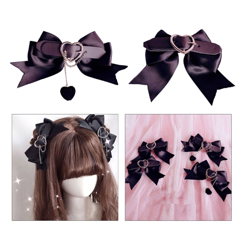Features: Outstanding from the crowd with these unique and eye-catching hair clips featuring bowknot, perfect for adding touches of spookiness to your Halloween look. Made of durable polyester material, these hair clips are available in 2 types and can be worn with a variety of outfits and hairstyles, making a versatile accessory for any occasion. Designed for women and girls who like to expresses their personality and through their fashion choices. Whether you're dressing up for a or just looking to add to your everyday look, these hair clips are the perfect addition to any outfit. With their unfaded finish and reusable designed, these hair clips make a great gift for birthdays, Halloween, or Mother Day, and are sure to become a favorite accessory for anyone who loves to stand out from the crowd. Specifications: Material: Polyester Fibre Size: Approx. 9cm/ 3.54in Type: Heart&Chain, Bowknot&Heart Package Includes: 1pair Punk Hairpin note: 1: Please allow 1-2cm errors due to manual measurement, make sure that you do not mind before you order. 2: Due to the difference between different monitors, the picture may not reflect the actual color of the item.