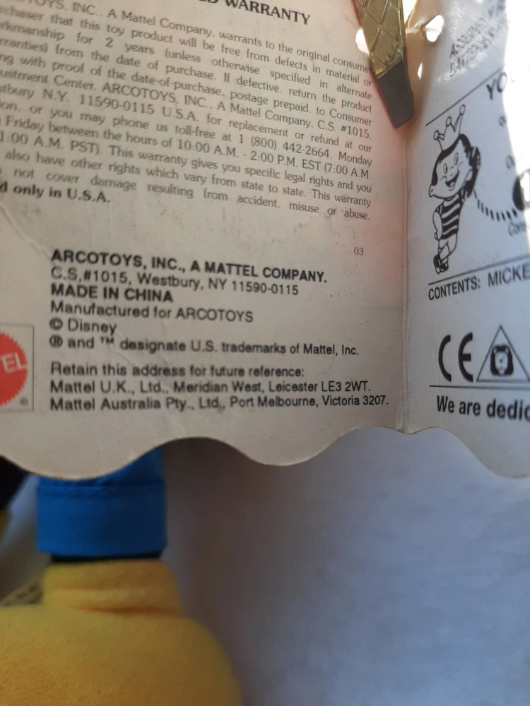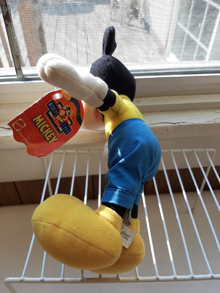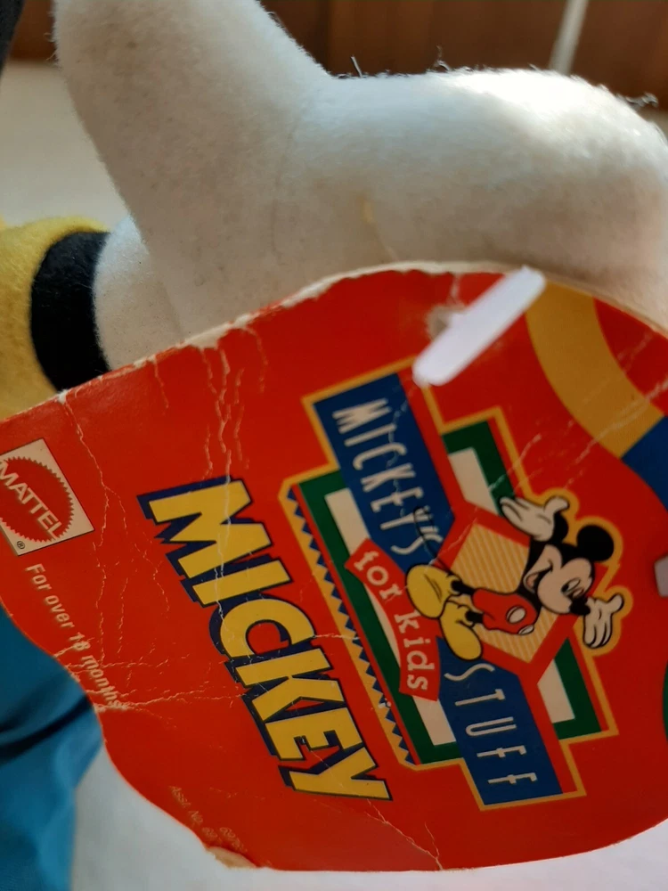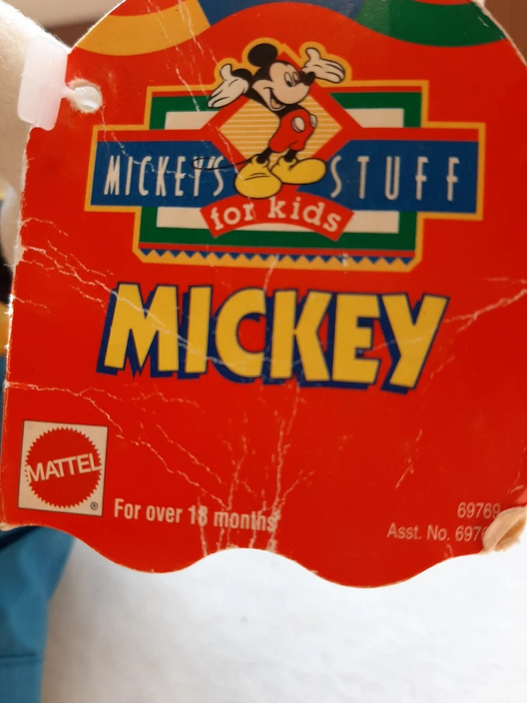 Mattel Vintage 90s Mickey's Stuff For Kids Plush Toy Tags Disney Mickey Mouse with tag In good pre-owned condition may show signs of wear from use/handling/storage/display. Please view all pics for condition/details/flaws/issues. SOLD AS IS There is damage to tag and some loose strings. There is/maybe marks/spots/dirt/debris please see photos 1-24, there is/maybe paint loss/sticker loss please see photos 1-24, there is lite discoloration please see photos 1-24, there are surface scratches to item please see photos 1-24, please see all photos for condition/issues/details.