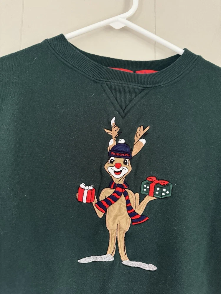 90s Official Rudolph Merch Green Christmas Crewneck Pullover Sz Small Unisex