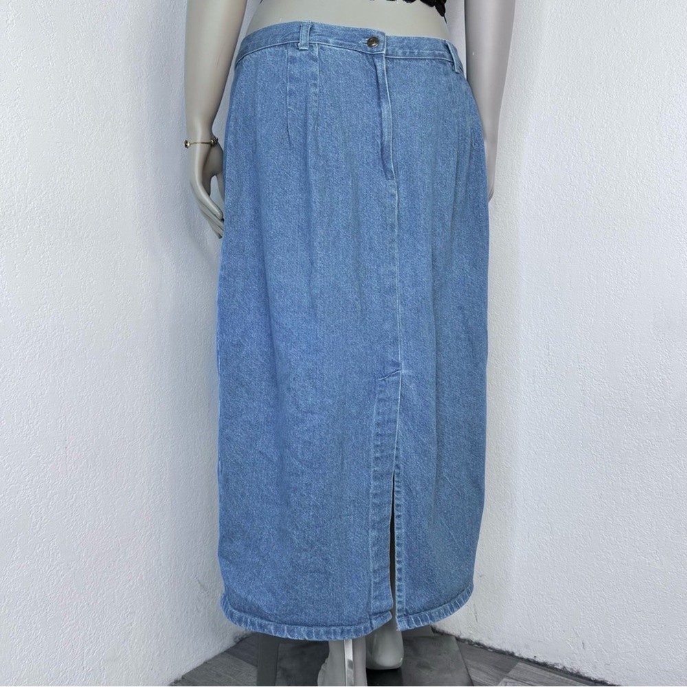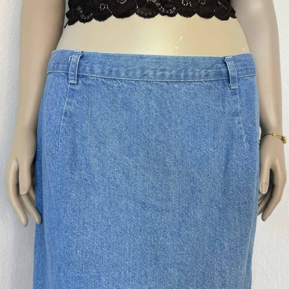Vintage 90s Denim Midi Skirt Cottagecore Western Country Costal Cowgirl St. John’s Bay, Good Condition Tag Size 20W, 37” Waist 100% Cotton No Stretch Measurements (approximate): Laying Flat not Doubled Waist: 18 1/2” Length: 33 1/2”