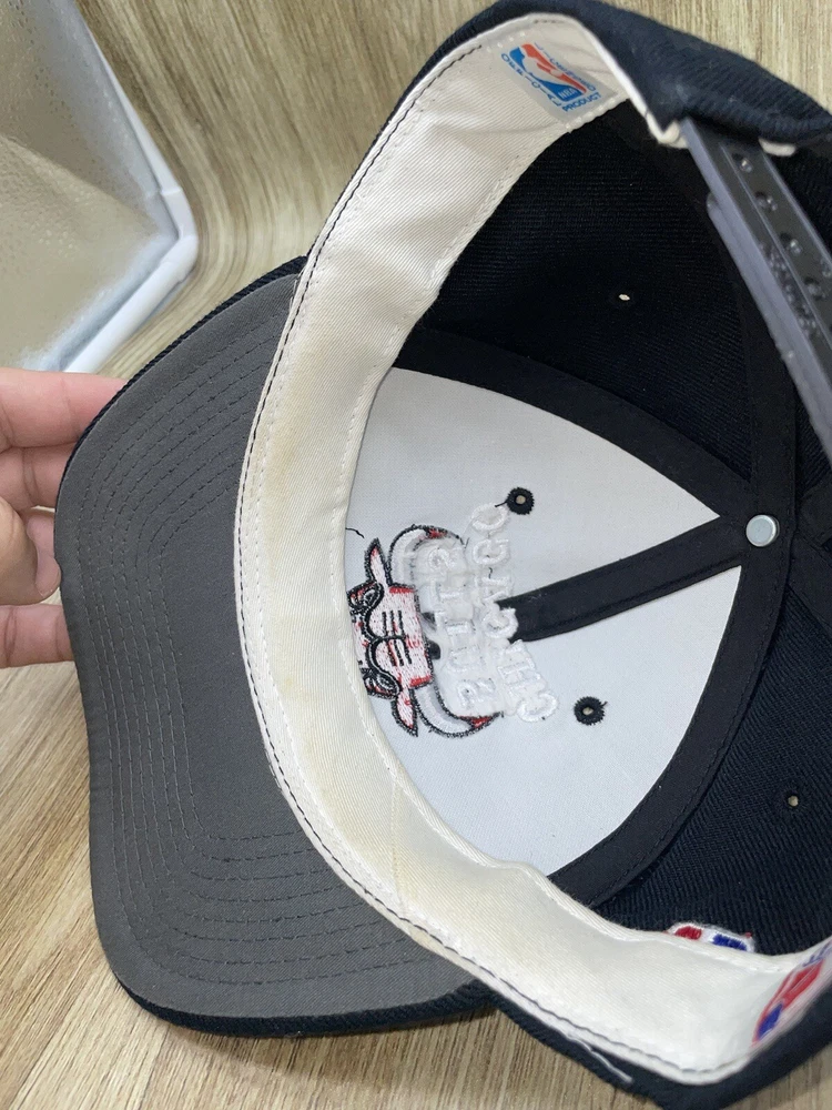 Nice cap damaged snap back please view pics The vintage 90s Chicago Bulls Sports Specialties Snapback Hat is an officially licensed NBA fan apparel featuring the iconic Chicago Bulls team. This black cap is designed as a one size fits all for unisex adults, making it a versatile piece for any Bulls fan. The snapback closure ensures a comfortable and adjustable fit, while the Sports Specialties brand adds a touch of nostalgia to this classic basketball accessory. Perfect for showcasing team pride and adding a retro flair to any outfit.