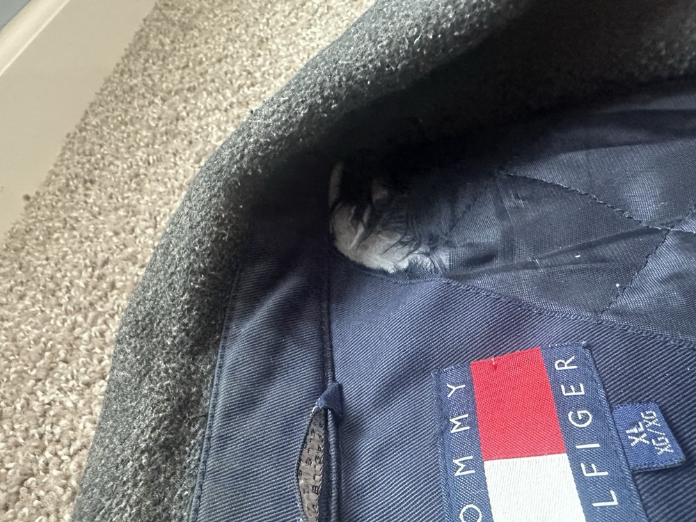 In used condition. Is torn on the inside by the size tag. Please see pictures.