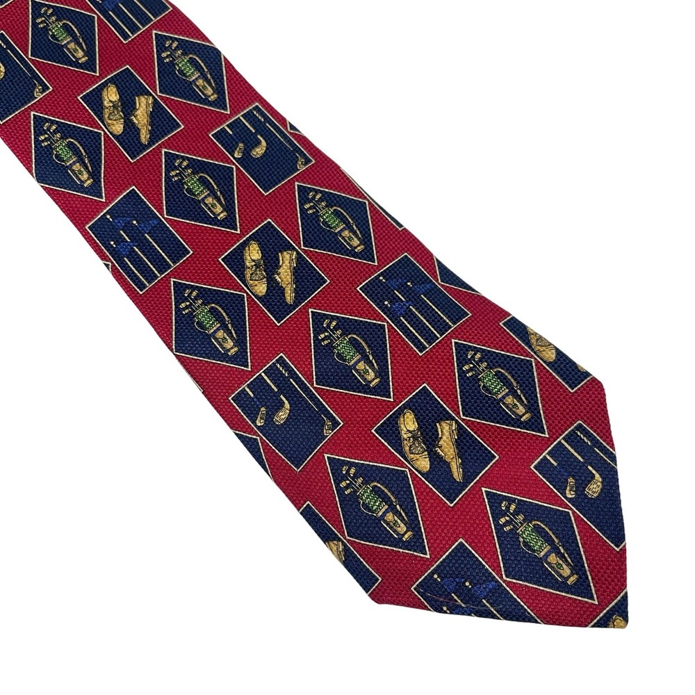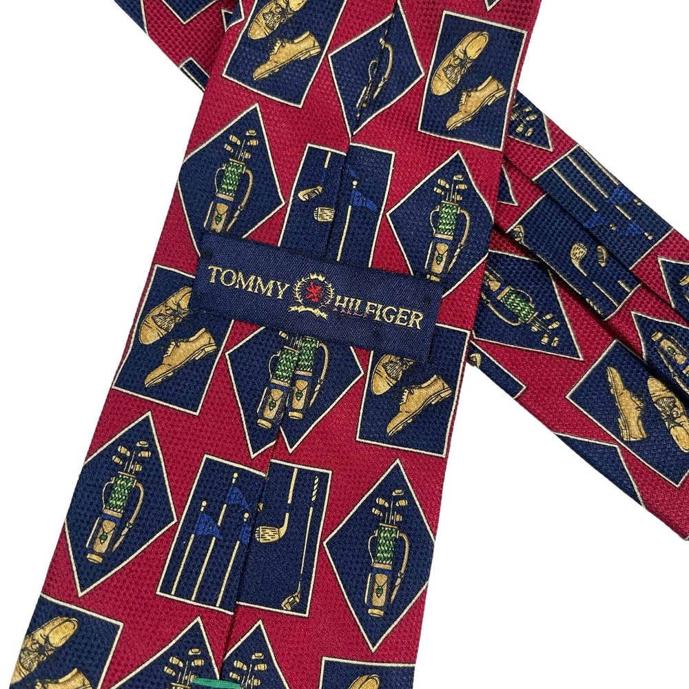 Country/Region of Manufacture: United States Personalize: No Pattern: Golf Theme Brand: Tommy Hilfiger Handmade: No Color: Burgundy Character: None Features: Adjustable Style: Designer Material: 100% Silk Theme: Sports, Golf, Athletic, Athleisure Item Length: Classic (57"-60") Size: One Size Department: Men Vintage: Yes Type: Tie