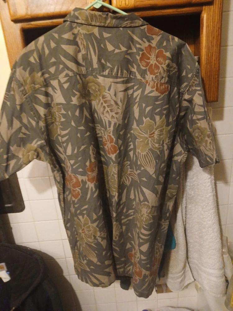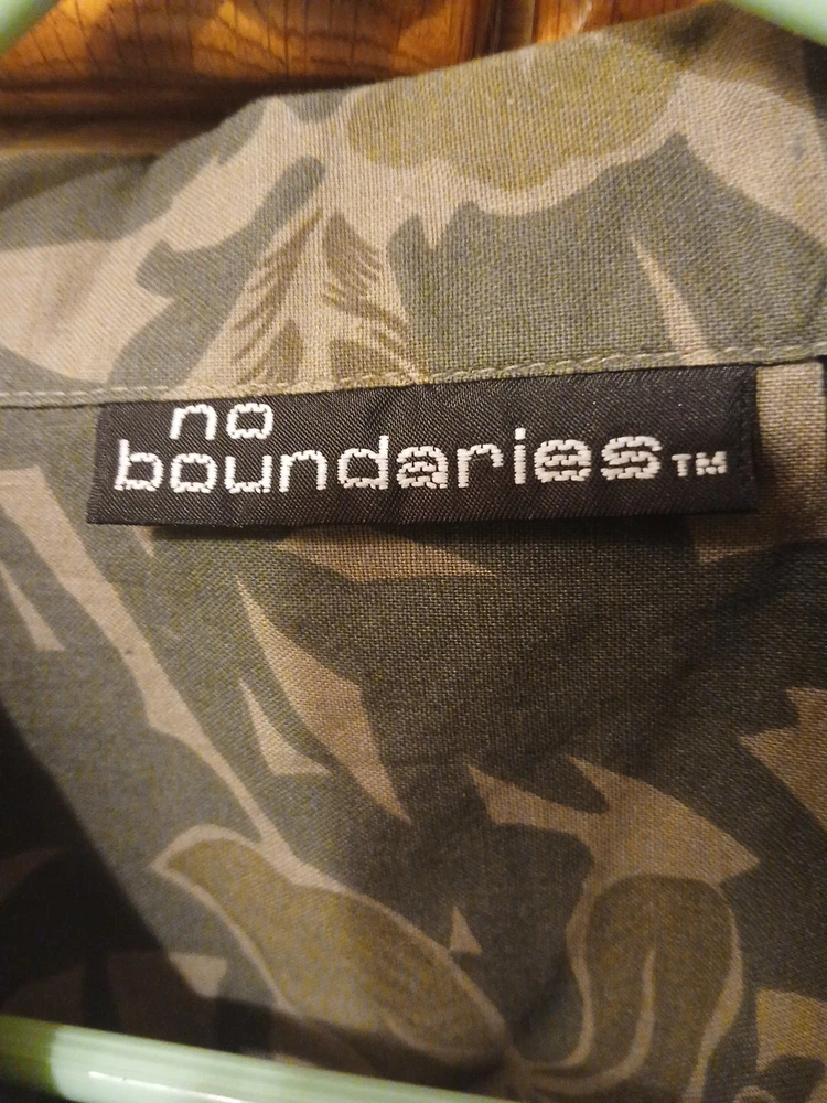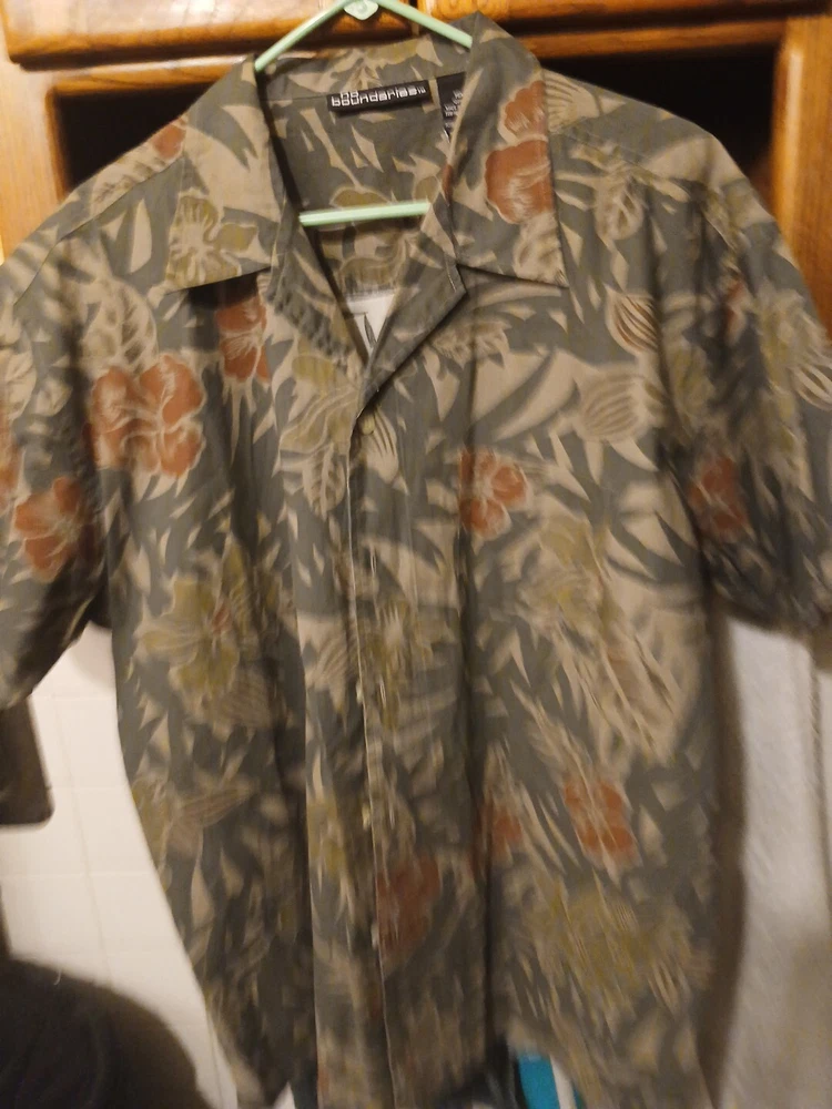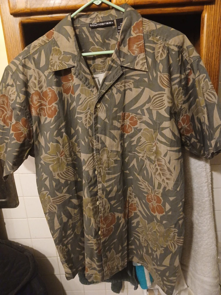 This vintage No Boundaries Hawaiian shirt is perfect for any occasion. With a collared neckline and short sleeves, it's great for travel, parties, and even casual or business settings. The beige color and floral leaf pattern make it a stylish addition to any wardrobe, and the lightweight, woven cotton fabric ensures comfort and durability. Featuring a button-up closure and sturdy cotton material, this shirt is a must-have for any beach or tropical getaway. The Aloha theme and practical features like pockets make it a versatile and stylish choice for any outdoor adventure. Made in Bangladesh, this shirt is available in size M and fits regular size types.