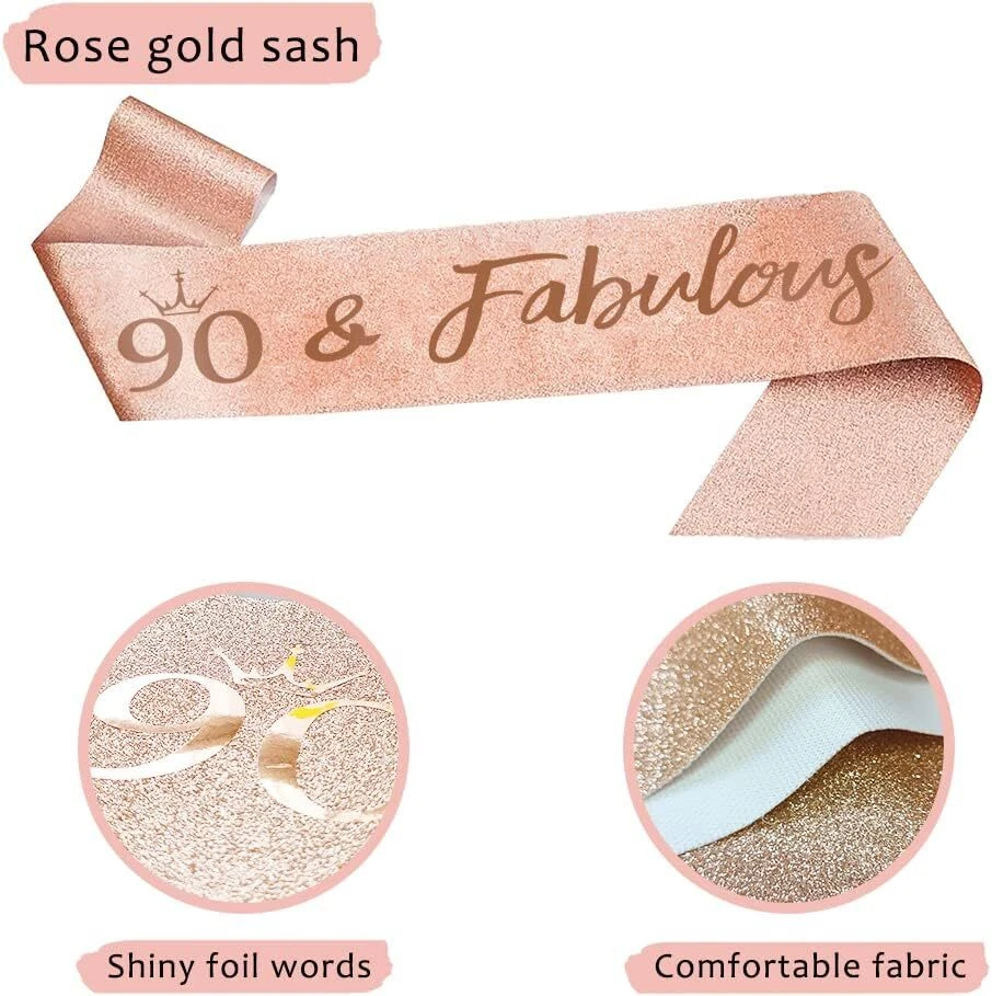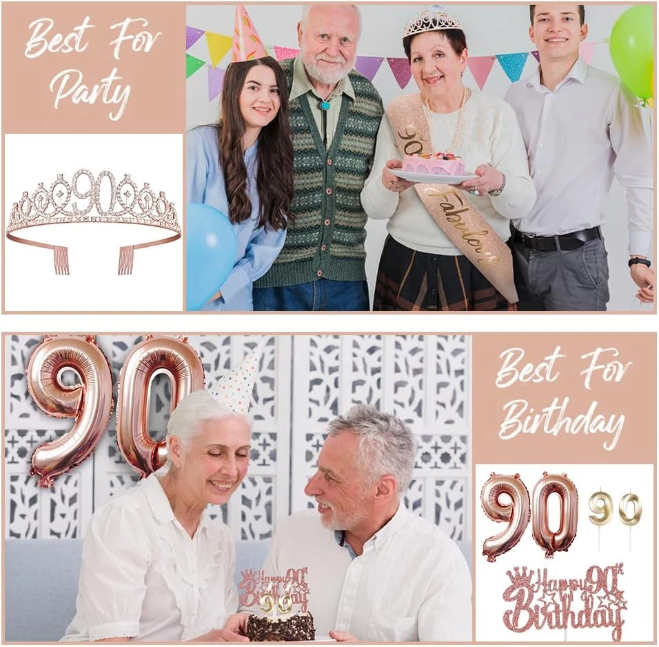 90th Birthday Decorations for Her - 5pcs Gifts Including Tiara Rose Gold Product Details Theme: 90th Birthday Occasion: Birthday Pattern: 90th UPC: 780007399740 Manufacturer: KENJOVIVO Product Dimensions: 0.5 x 0.5 x 1 inches Item Weight: 5.9 ounces Item model number: HGRG Color: Rose Gold Material: Alloy, Satin Included Components: Sash Unit Count: 1.0 Count Brand: KENJOVIVO 【90th Birthday Decorations for Her】Glittery 90th birthday tiara crown, birthday sash for women, balloons, birthday number candles and happy birthday cake topper. All decorations are using luxuriant nobility rose gold color, you or your women will be the bright people in the party. 【Gorgeous Birthday Crown for women】Carefully made of high quality alloy and rhinestone, The gorgeous and shining crown is a perfect blend of your noble temperament under the light of the lamp. Crown with combs that make sure it can grip the hair more tightly. 【Rose Gold 90th Birthday Sash】The birthday sash is made of high quality glitter satin with foil lettering and the sash is in 63 inch length with an attractive gold pin that can be adjusted to the desired length when used. 【Perfect party cake decorations】90th birthday candles, 90th balloons and Cake topper is a funny choice for your party cakes. Our candles will last a long time. As you celebrate with your family and make your wishes, our digital candles will remain lit until you are ready to blow them out. 【Unique Celebration for Her】We can only experience one birthday at each age. Every birthday is a hope for the year ahead and a remembrance of the past year. Create every birthday beautiful moment as birthday gifts for her with the birthday decorations set.