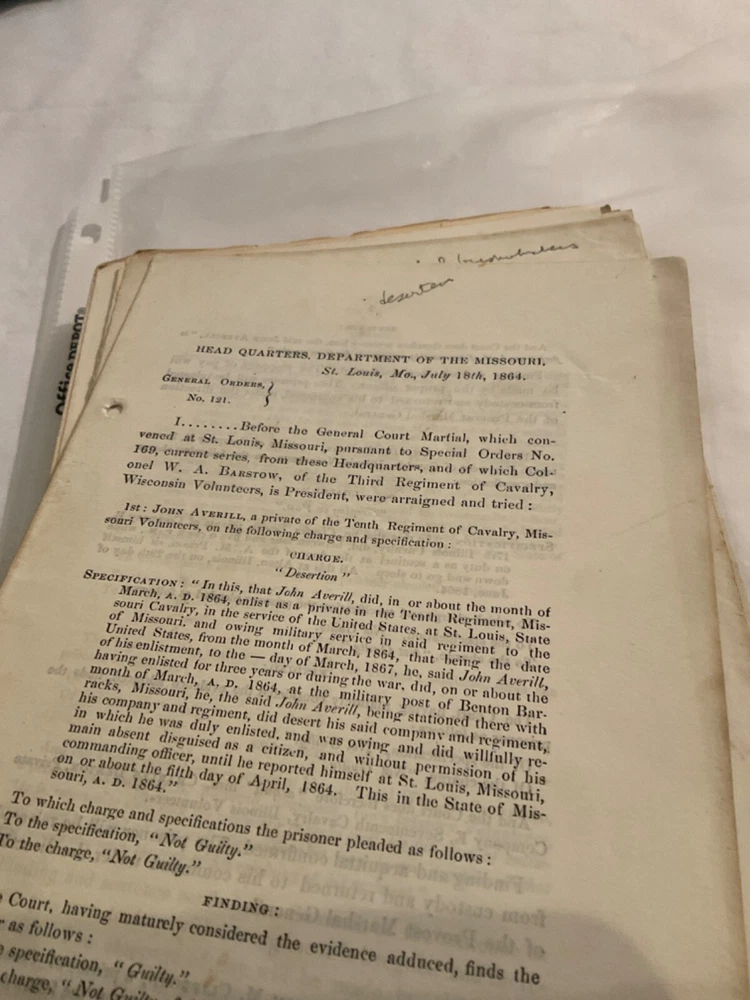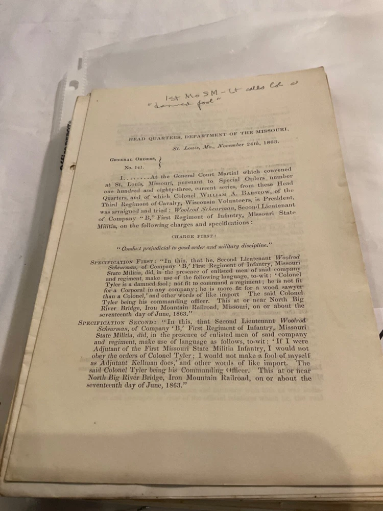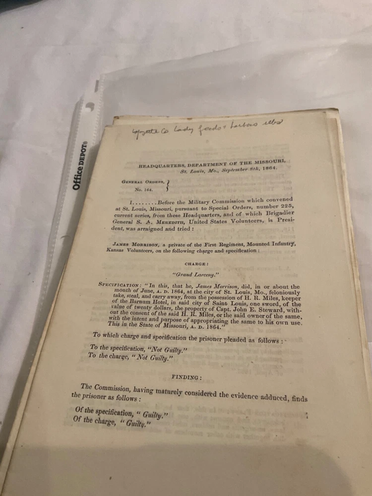 913 GROUP OF MISSOURI CIVIL WAR GENERAL ORDERS COURTMARTIALS REBEL INSUBORDINATI