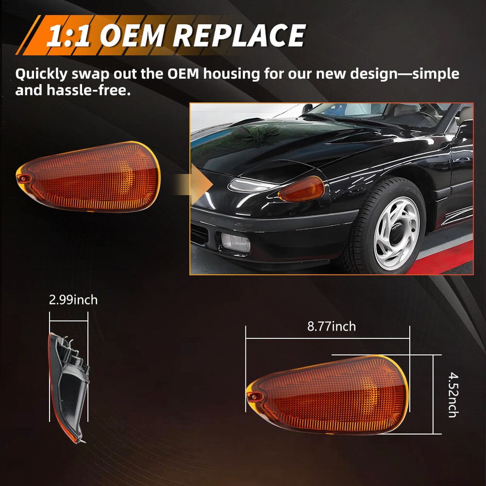 Product Detail Copyright©MotoringPlus Details This page features One Pair (2 Pieces) OEM-Spec Amber Lens Front Bumper Parking Turn Signal Lights Kit For 1991-1993 Dodge Stealth & 1991-1993 Mitsubishi 3000GT These lamps are made with high-quality Polymethy l Methacrylate (PMMA) and Polycarbonate (PC) plastics No modification required! Each piece is easy to install with an OEM fit, Instantly transform your car and give it a modern and trendy appearance and feel! Note: Bulbs & socket adapters are NOT included Specifications: 100% Brand new and quality Lens Color: Amber A complete set of two lamps, replacement for the driver side & passenger sides Compatible With 1991-1993 Dodge Stealth & 1991-1993 Mitsubishi 3000GT Directly replace or repair your car's front bumper turn signal lamps CE DOT SAE approved Application: For 1991 1992 1993 Dodge Stealth For 1991 1992 1993 Mitsubishi 3000GT Replace OEM # MB698915, MB698917 Please make sure you have available space in your car for these lamps to fit before placing or der. Package include: 2PCS Driver & Passenger side Front Bumper Turn Signal Lights (Amber Lens) Installation: Direct replacement the OEM parts without any modification needed Note: Professional installation is highly recommended! Returns Policy Shipping Policy Payment Method About US Contact Us Returns Policy Please check actual stock bulb model & housing size before purchasing replacement bulbs. Compatibility list on eBay listing is not a complete list and it is a known issue that there are errors on it. Half year warranty from the purchased date. Please contact us via ebay message before returning the defectived item. Our warranty does not extended to any products that are physically damaged or that are not under normal operating conditions as a result of misuse or improper installation on the buyers/user's part. Return items should include the original packaging and all accessories. Buyers MUST contact us for the returning address. In all cases, buyers pay shipping fees at their own cost to return products for exchange or refund. We will be responsible for the postage of replacements. Refund will be made upon receipt of the returned item. Our goal is to make sure you are a happy buyer and pleasant shopping with us. If you have any problems, please contact us immediately before leaving us any negative or neutral feedback. We understand the concerns and frustrations you might have, and will do our endeavor to resolve the issues. Please give us the opportunity to resolve any problem. Shipping Policy Item will be shipped from China / Hongkong Post by Standard International Post. All orders will be shipped to buyer's paypal shipping address within 24 hours after receiving your verified payment (Excluding Weekends and Public Holidays) International order may takes about 15-25 business day delivery time for most countries. Transactions on weekends or public holidays,item will be sent later on work time. Payment Method We accept Paypal ONLY. Unpaid transaction will be cancelled after 8 days About US Contact Us We are dedicated to providing you the best shopping experience and high quality items at a very low price. If you are satisfied with our service,Please remember to leave us 5 STAR for All Detailed Seller Ratings If you found any problem/issue of our merchandise/service,please let us know before leaving any negative feedback! Please feel free to contact us if you have any question. Any message will be replied within 24 hours. We will try our best to help! Home Payment Shipping About us Contact us Copyright©MotoringPlus Home Payment Shipping About us Contact us Store Categories Store Categories SIDE MARKER LIGHT TURN SIGNAL LIGHT TAIL BRAKE LIGHT LICENSE PLATE LIGHT DECODER OTHERS Other Product Detail Copyright©OFFKAT Why Buy From Us Why Buy From Us Details This page features One Pair (2 Pieces) OEM-Spec Amber Lens Front Bumper Parking Turn Signal Lights Kit For 1991-1993 Dodge Stealth & 1991-1993 Mitsubishi 3000GT These lamps are made with high-quality Polymethy l Methacrylate (PMMA) and Polycarbonate (PC) plastics No modification required! Each piece is easy to install with an OEM fit, Instantly transform your car and give it a modern and trendy appearance and feel! Note: Bulbs & socket adapters are NOT included Specifications: 100% Brand new and quality Lens Color: Amber A complete set of two lamps, replacement for the driver side & passenger sides Compatible With 1991-1993 Dodge Stealth & 1991-1993 Mitsubishi 3000GT Directly replace or repair your car's front bumper turn signal lamps CE DOT SAE approved Application: For 1991 1992 1993 Dodge Stealth For 1991 1992 1993 Mitsubishi 3000GT Replace OEM # MB698915, MB698917 Please make sure you have available space in your car for these lamps to fit before placing or der. Package include: 2PCS Driver & Passenger side Front Bumper Turn Signal Lights (Amber Lens) Installation: Direct replacement the OEM parts without any modification needed Note: Professional installation is highly recommended! Returns Policy Shipping Policy Payment Method About US Contact Us Returns Policy Our 60-day Satisfaction Guarantee assures our customers that they will receive all orders promptly and exactly as described. In addition, it allows customers to return new and unused products in their original factory condition for any reason within 60 days from the date of purchase. Buyers are responsible for appropriate packing, returning shipping cost, insurance and returning the item in "new" condition. Used items will not be accepted for return. We will replace the returning item with an identical item, issue a full store credit or a full refund. Our goal is to make sure you are a happy buyer and pleasant shopping with us. If you have any problems, please contact us immediately before leaving us any negative or neutral feedback. We understand the concerns and frustrations you might have, and will do our endeavor to resolve the issues. Please give us the opportunit