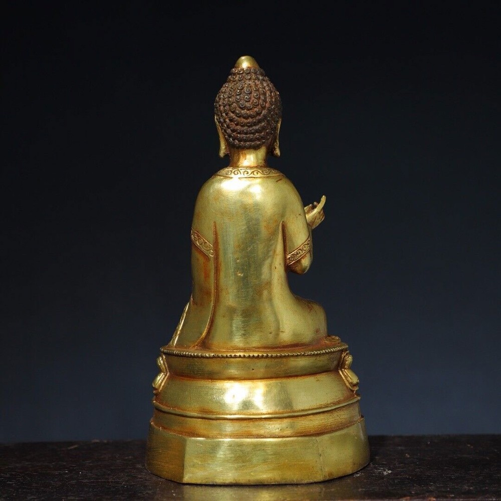 9.1-inch Antique Tibetan Buddhism Bronze Gilt Tathagata Buddha Statue