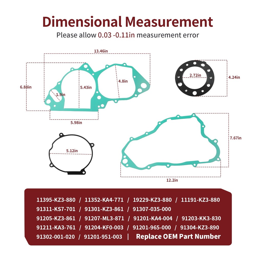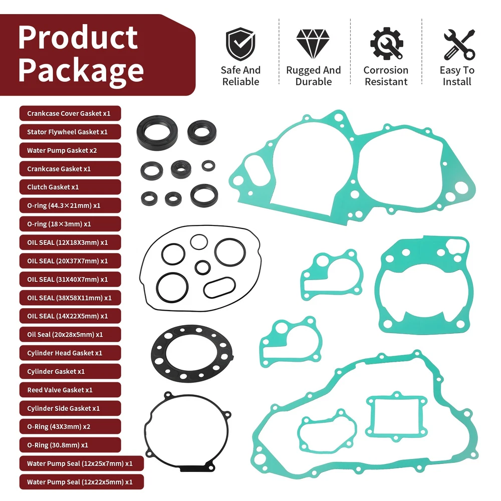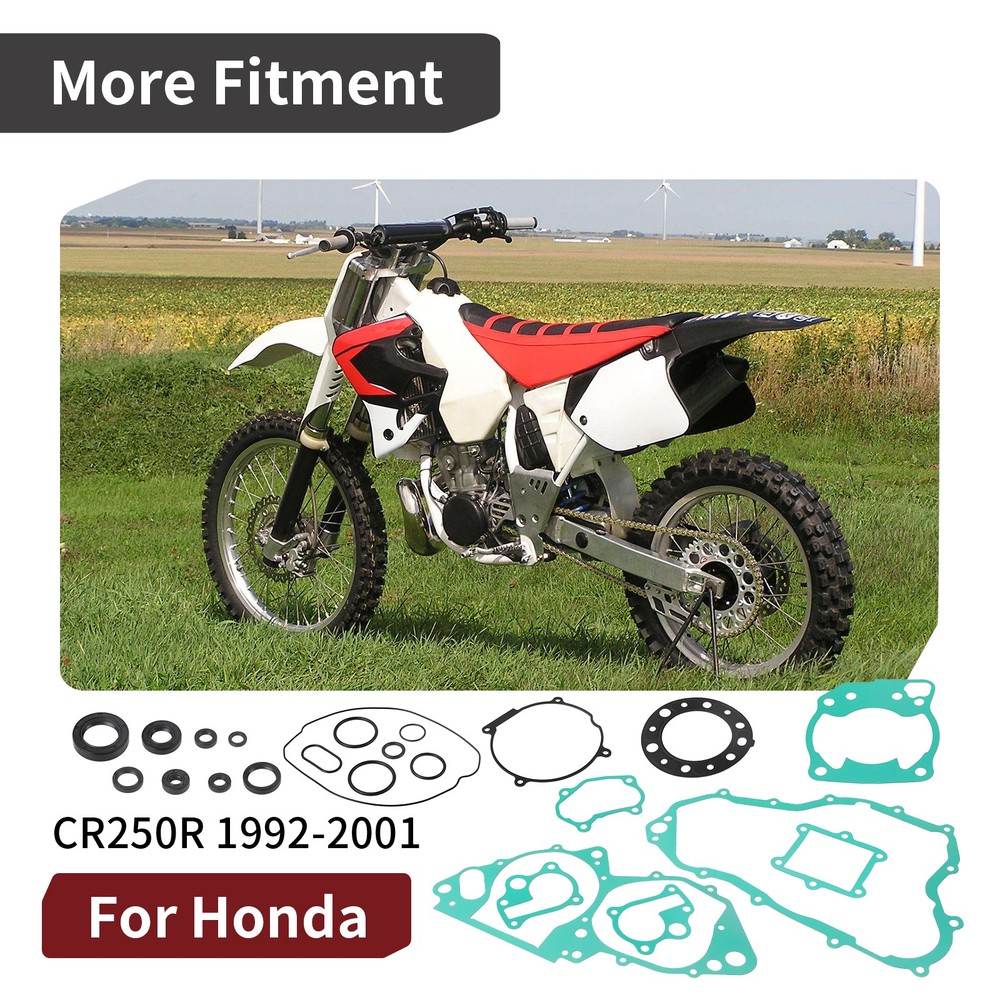 92-01 For Honda CR250R CR 250 R Complete Engine Gasket Set Kit Top & Bottom End Note: Please Compare Your Original Unit With The Picture. 100% Brand New and High Quality. Product Info: Our stock photos shown are of the actual item. IN STOCK AND READY TO SHIP Replace OEM Part Number: 11395-KZ3-880 11352-KA4-771 19229-KZ3-880 11191-KZ3-880 91311-KS7-701 91301-KZ3-861 91307-035-000 MOTO1988®Brand Products This part fits the following models: For Honda CR250R 1992-2001 Package: Crankcase Cover Gasket x1 Stator Flywheel Gasket x1 Water Pump Gasket x2 Crankcase Gasket x1 Clutch Gasket x1 O-ring(44.3×21mm)x1 O-ring(18×3mm)x1 OIL SEAL (12X18X3) x1 91201-951-003 OIL SEAL (20X37X7) x1 91205-KZ3-861 OIL SEAL (31X40X7) x1 91207-ML3-871 OIL SEAL (38X58X11) x1 91201-KA4-004 OIL SEAL (14X22X5) x1 91203-KK3-830 Water Pump Seal (12x25x7mm) x1 91211-KA3-761 Oil Seal (20x28x5mm) x1 91204-KF0-003 Water Pump Seal (12x22x5mm) x1 91201-965-000 Cylinder Head Gasket x1 Cylinder Gasket x1 Reed Valve Gasket x1 Cylinder Side Gasket x1 O-Ring(43X3mm) x2 91304-KZ3-890 O-Ring(30.8mm)x1 91302-001-020 Payment Delivery details Terms of sales About us Contact us Payment We only accept payment by PayPal. PayPal is the only online payment method we accept. Please make sure you have a valid/confirmed PayPal account prior bidding. Delivery details Note: Warehouse and logistics companies have been severely short of staff recently. And because of too many parcels backlog in peak season, staff can not timely processing. As a result, the delivery of parcels has been slow recently. If you urgently need to receive the goods, please contact us to consult the logistics delivery time before purchasing. 1. We ship to EBAY'S ADDRESS ONLY. So please confirm your address is correct, and if you want to change the delivery address, just feel free to contact us when you purchase. 2. Item will be shipped within 2 business days after payment confirmation. 3. We will ship this item to buyers by USPS - First Class Package(Standard 3-5 Business Days) or USPS - Priority Mail or UPS - Surepost (Economy 1-6 Business Days). Please pay attention that import duties, taxes and charges are not included in the item price or shipping charges. Check with your country's customs office to determine what these additional costs will be prior to buying. Thank you. Terms of sales If you receive the item that have any quality problem or damaged, please feel free to let us know and provide the photos. We offer free replacement or full refund if it's our responsibility that causes the mistake. But we will not accept the return if the item damaged by the buyer's operational errors. If you are not 100% satisfied with the items for other reasons and ask for refund. Please be noted that only the listing price excluding shipping fee would be refunded. Items should be returned with original packages. About us Please feel free to contact us anytime if you have any questions. If you are satisfied with our items and service, leaving us an ALL-5-STAR and positive feedback would be greatly appreciated. Your encouragement will keep us moving forward. Your satisfaction is our final goal! Contact us We care about our valued buyers. We aim at satisfying every visitor, no matter what kind of situation you meet with, we will be right here to serve you. If you have any questions, our Customer Service staffs will be very glad to help you. We try our best to reply to your emails as soon as possible. Please allow 24 business hours for us to respond. 92-01 For Honda CR250R CR 250 R Complete Engine Gasket Set Kit Top & Bottom End Note: Please Compare Your Original Unit With The Picture. 100% Brand New and High Quality. Product Info: Our stock photos shown are of the actual item. IN STOCK AND READY TO SHIP Replace OEM Part Number: 11395-KZ3-880 11352-KA4-771 19229-KZ3-880 11191-KZ3-880 91311-KS7-701 91301-KZ3-861 91307-035-000 MOTO1988®Brand Products This part fits the following models: For Honda CR250R 1992-2001 Package: Crankcase Cover Gasket x1 Stator Flywheel Gasket x1 Water Pump Gasket x2 Crankcase Gasket x1 Clutch Gasket x1 O-ring(44.3×21mm)x1 O-ring(18×3mm)x1 OIL SEAL (12X18X3) x1 91201-951-003 OIL SEAL (20X37X7) x1 91205-KZ3-861 OIL SEAL (31X40X7) x1 91207-ML3-871 OIL SEAL (38X58X11) x1 91201-KA4-004 OIL SEAL (14X22X5) x1 91203-KK3-830 Water Pump Seal (12x25x7mm) x1 91211-KA3-761 Oil Seal (20x28x5mm) x1 91204-KF0-003 Water Pump Seal (12x22x5mm) x1 91201-965-000 Cylinder Head Gasket x1 Cylinder Gasket x1 Reed Valve Gasket x1 Cylinder Side Gasket x1 O-Ring(43X3mm) x2 91304-KZ3-890 O-Ring(30.8mm)x1 91302-001-020 Payment Delivery details Terms of sales About us Contact us Payment We only accept payment by PayPal. PayPal is the only online payment method we accept. Please make sure you have a valid/confirmed PayPal account prior bidding. Delivery details Note: Warehouse and logistics companies have been severely short of staff recently. And because of too many parcels backlog in peak season, staff can not timely processing. As a result, the delivery of parcels has been slow recently. If you urgently need to receive the goods, please contact us to consult the logistics delivery time before purchasing. 1. We ship to EBAY'S ADDRESS ONLY. So please confirm your address is correct, and if you want to change the delivery address, just feel free to contact us when you purchase. 2. Item will be shipped within 1 business days after payment confirmation. 3. We will ship this item to buyers by USPS - First Class Package(Standard 3-5 Business Days) or USPS - Priority Mail or UPS - Surepost (Economy 1-6 Business Days). Please pay attention that import duties, taxes and charges are not included in the item price or shipping charges. Check with your country's customs office to determine what these additional costs will be prior to buying. Thank you. Terms of sales If you receive the item that have any quality problem or damaged, please feel free to let us know and provide the photos. We offer fr