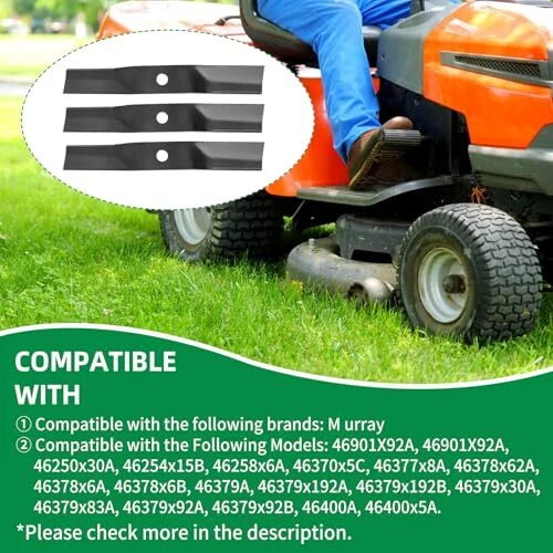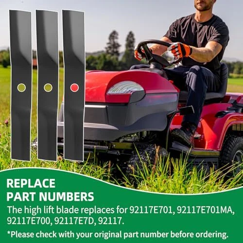 Menu 1. We require immediate payment. 2. We currently accept payment via eBay managed payments only. 3. Once payment is cleared, we will dispatch your shipment within 1-3 business days. Please refer to the "Shipping" tab for more information regarding shipping speed to your destination. 92117E701 Mower Blades Compatible with Murray 46" Cut Deck, 92117E701MA High Lift Lawnmower Blades Compatible with Murray 46901X92A Lawn Tractor, Replace for 92117 92117E7D, 3 Pack Product description 【Replacement Part Number】The high lift lawn mower blade replaces for 92117E701, 92117E701MA, 92117E700, 92117E7D, 92117. 【Compatible Models】The 92117E701 sharp riding mower blade compatibles with Mu rray 46901X92A, 46250x30A, 46254x15B, 46258x6A, 46370x5C for 46" cutting deck. Please check more in product description. 【Extended Durability】Crafted from premium-grade steel, our 92117E701MA riding mower blade is engineered to be exceptionally robust, ensuring an extended lifespan and maintaining its sharpness over time. Designed for both efficient mowing and high-lift functionality, this blade effortlessly keeps your lawn and garden in top shape with minimal effort. 【Easy&Safe to Install】Perfect fit, easy install. You can loosen and unthread the blade bolt to remove the old blade, and if you install the new blade, you can put the blade, blade support, and blade bolt back in position. The mower blade‘s sharp side should face the ground. 【Package Include】3x high lift blades. The mower blade dimension: Length: 15 3/4", Width: 2 1/4", Thickness: 1/7", Round Center Hole: 6/7", For Deck Size: 46". PLEASE MESSAGE US IF YOU HAVE ANY OTHER QUESTIONS, AND MANY THANKS FOR READING ALL OF THIS. Copyright ©#. All Rights Reserved.