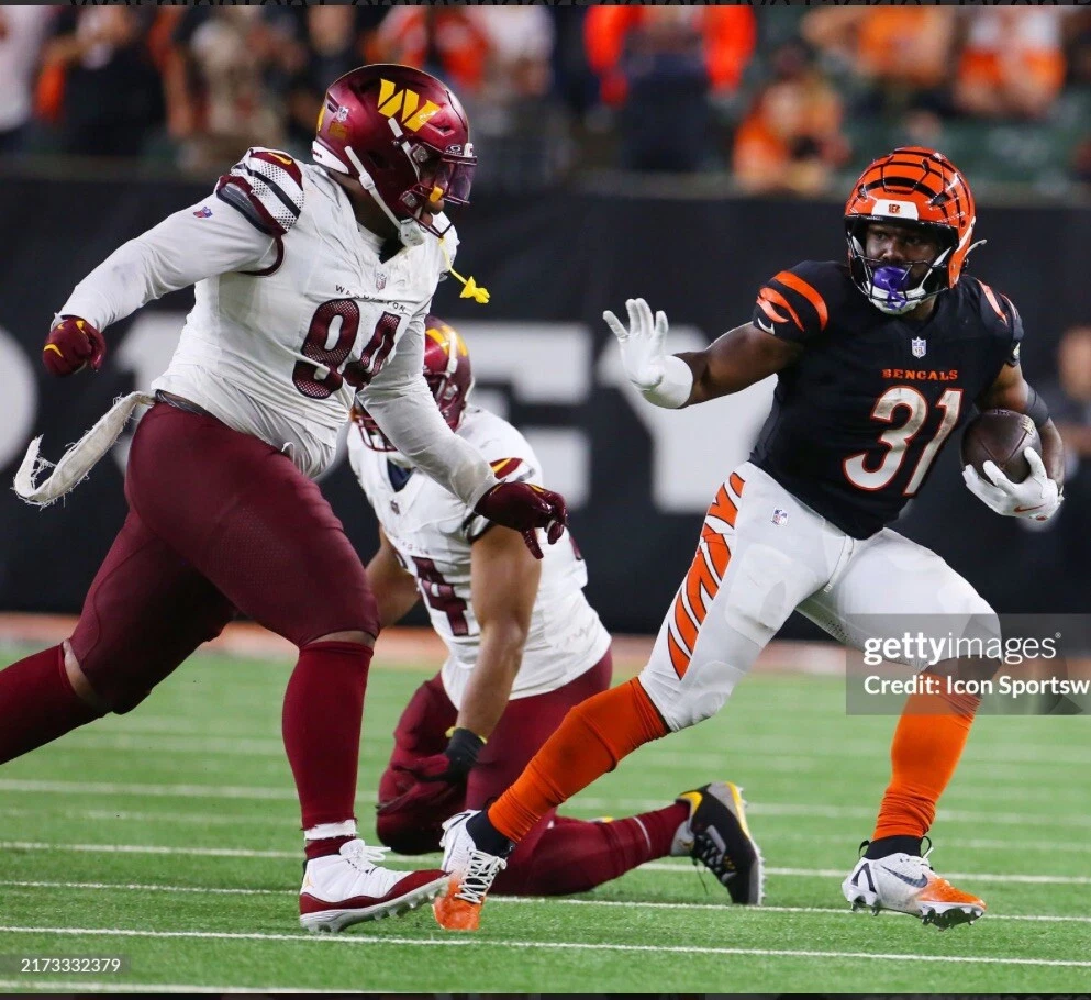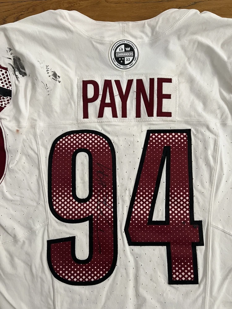 Game Used Daron Payne Washington Commanders Jersey Worn on 9/23/2024 vs The Bengals Unwashed and Signed You are bidding on just the jersey (no paperwork or COA comes with this jersey)