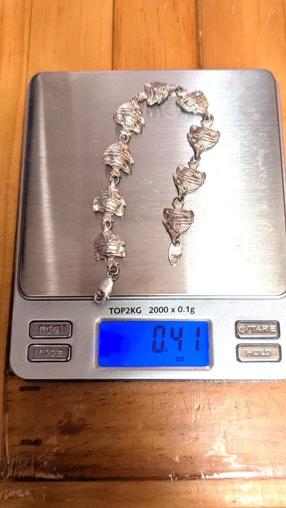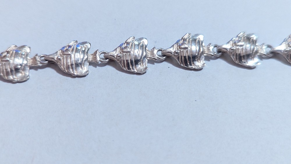 This bracelet is absolutely stunning! The linked fish design is so unique and beautifully crafted from high-quality sterling silver. It’s lightweight yet durable, and the perfect size for a comfortable fit. The sleek, elegant look makes it versatile—dress it up or keep it casual. Love how it adds a subtle ocean-inspired charm to any outfit. A must-have for silver jewelry lovers!