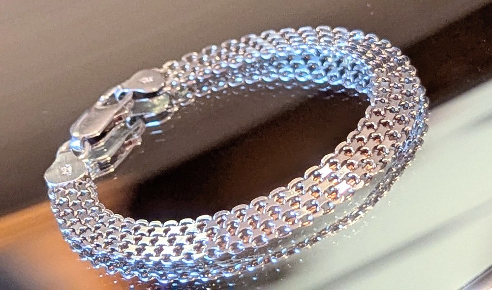 This bracelet is absolutely gorgeous! The sleek mesh design feels so elegant and high-quality—definitely looks way more expensive than it is. The sterling silver has a beautiful shine, and it’s so lightweight and comfortable. I love how versatile it is—dresses up my work outfits and adds a chic touch to casual looks. The Italian craftsmanship really shows, and the AT stamp confirms its authenticity. A must-have for anyone who loves timeless, understated jewelry!